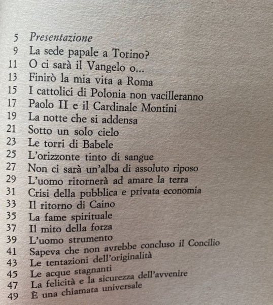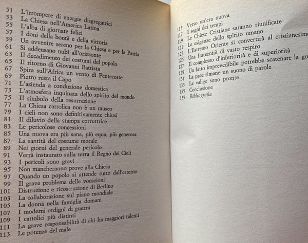 Soggetti: Religione, Teologia, Profezie, Escatologia, Futurologia, Testi profetologici, Anticristo, Monaca di Dresda, Messaggi Profetici, Papa Buono, Grandi Profeti, Nostradamus, Repertorio classico, Riferimento, Bibliografia, Biografie, Memorie, Chiesa, Vaticini, Eventi storici, Previsioni, Pietro, Papi, Pontefici, Misteri, Miracoli, Morte, Cronaca Vera, Apocalisse, Veggenti, Interpreti, Profezie Cristiane, Cristianesimo, Divinazione, Esoterismo, Arti divinatorie, Giovanni XXIII, Encicliche, Pensieri, Discorsi, Futuro, Critica, Sede papale, Rivelazioni, Guerre, Visioni, Umanità, Destino, Crisi, Valori, Eresie, Islam, Ebraismo, Concilio Vaticano, Ermellino, Relazioni, Miti, Credenze, Universalismo, Fede, Pace, Guerra, Famiglia, Donne, Bibbia, Pasqua, Resurrezione, Trinità, Madonna, Transizione, Qualità extrasensoriali, Poteri, Premonizioni, Voci interiori, Conclave, Cardinale Roncalli, Louise Chaigne, Successione, Pio XII, Dio, Onnipotenza, Ragno Nero, Elezione papale, Concilio Vaticano, Odio di classe, Crocifissione, Simbolismo, Caino, Abele, Sole giallo, L. O' Rourker, Materialismo, Avvenire, Ideologie, Politica, Relazioni internazionali, Complottismo, Sensitivi, Weeky, Ritorno, Speranza, Grazia, Salvezza, Economia, Miseria, Povertà, Terzo Mondo, Popoli, Comunismo, Anarchia, Paradiso Terrestre, Robert Champell, Egoismo, Solitudine, Malattie, Epidemie, Carestie, Sudamerica, Gesù Cristo, Messia, Missione, Vocazioni, Devozione, Preti, Ecumenismo, Catechismo, Catechesi, Bambini, Abusi, Violenza, Satana, Diavolo, Peccato, Colpa, Responsabilità, Peccatori, Tentazioni, Legioni sataniche, Satanismo, Esorcismo, Esorcisti, Giovanni Battista, Terza guerra Mondiale, Conflitti, Eden, Costumi, Benedizione, Cristianizzazione, Testamento spirituale, Anni Sessanta, Anni Settanta, Roma, Pacem in terris, Russia, Zar Alessandro II, Date, Numeri, Kennedy, Re Feysal, Omicidi, Assassinio, Anima, Messaggi, Spirito Santo, Collezionismo, Libri Vintage Fuori catalogo online, Fioretti, Sacrificio, Passione, Dolore, Provvidenza, Aneddoti, Tempio, Avvenimenti, Cagliostro, Croce, Libertà, Storia, Religion, Theology, Prophecies, Eschatology, Futurology, Prophetological Texts, Antichrist, Nun of Dresden, Prophetic Messages, Good Pope, Great Prophets, Classical Repertoire, Reference, Bibliography, Biographies, Memories, Church, Vaticini, Historical events, Forecasts, Peter, Popes, Pontiffs, Mysteries, Miracles, Death, True Chronicle, Apocalypse, Seers, Interpreters, Christian Prophecies, Christianity, Divination, Esotericism, Divinatory Arts, John XXIII, Encyclicals, Thoughts, Speeches, Future, Criticism, Papal See, Revelations, Wars, Visions, Humanity, Destiny, Crisis, Values, Heresy, Judaism, Vatican Council, Ermine, Relations, Myths, Beliefs, Universalism, Faith, Peace, War, Family, Women, Bible, Easter, Resurrection, Trinity, Transition, Extrasensory qualities, Powers, Premonitions, Inner voices, Conclave, Cardinal, Succession, Pius XII, God, Omnipotence, Black Spider, Papal election, Vatican Council, Class hatred, Crucifixion, Symbolism, Cain, Yellow sun, Materialism, Future, Ideologies, Politics, International relations, Conspiracy, Psychics, Return, Hope, Grace, Salvation, Economy, Misery, Poverty, Third World, Peoples, Communism, Anarchy, Earthly Paradise, Egoism, Loneliness, Diseases, Epidemics, Famine, South America, Jesus Christ, Messiah, Mission, Vocations, Devotion, Priests, Ecumenism, Catechism, Catechesis, Children, Abuses, Violence, Satan, Devil, Sin, Guilt, Responsibility, Sinners, Temptations, Satanic legions, Satanism, Exorcism, Exorcists, John the Baptist, World War III, Conflicts, Costumes, Blessing, Christianization, Spiritual Testament, Sixties, Seventies, Rome, Pacem in terris, Russia, Tsar Alexander II, Dates, Numbers, Murders, Murder, Soul, Messages, Holy Spirit, Collectibles, Out of print books, Sacrifice, Passion, Pain, Providence, Anecdotes, Temple, Events, Cross, Freedom, History