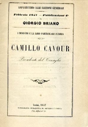 I Ministri e la loro particolare storia. Camillo Cavour Presidente del Consiglio. Apparecchio alle elezioni generali. Febbraio 1857 - Pubblicazione 4a