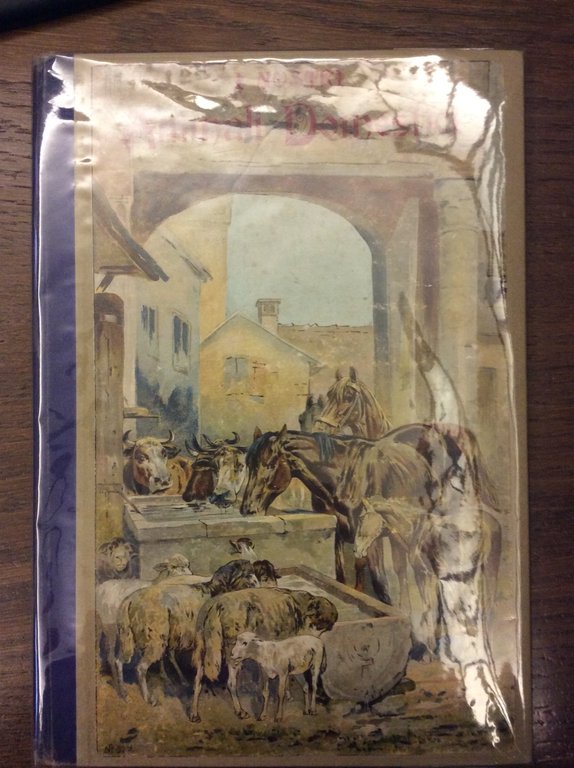 In-4, mz. tela, piatti in cartonato illustrato a colori, con 12 belle tavole litografate a colori a doppia pagina, ciascuna con didascalie in francese, inglese, tedesco, italiano e olandese, che raffigurano: pecora - vacca - capra - porgi (porci) - cane - gatti - gallo e gallina - oche - pollo d'India (tacchino) - pavone - piccione - cigno.Pagine leggermente ingiallite ai margini per la qualità della carta e con picc. strappi, ma complessivamente esemplare ben conservato. .