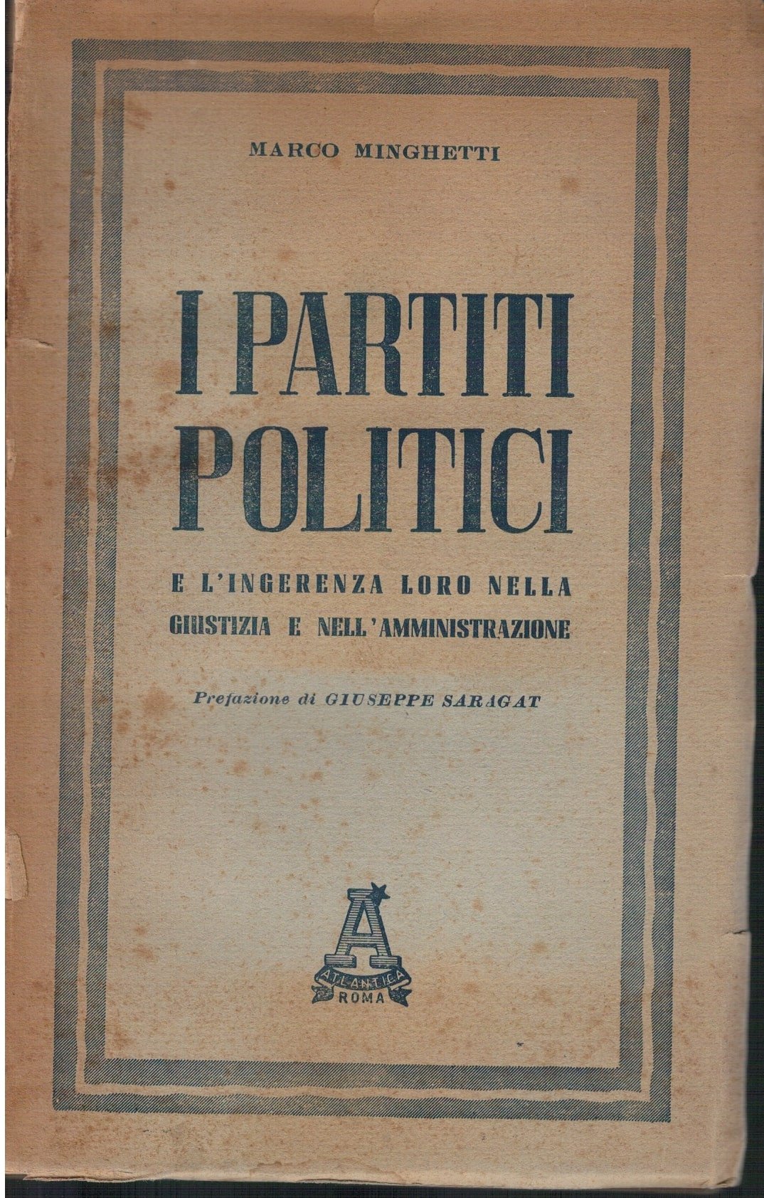 Brossura con alette informative mancanza dell'unghia segni d'uso, intonso (ancora da dividere). Stampato sul finire della guerra dove già di dibatteva delle ingerenze politiche ai danni della giustizia dell'amministrazione pubblica. Non comune con prefazione di Giuseppe Saragat