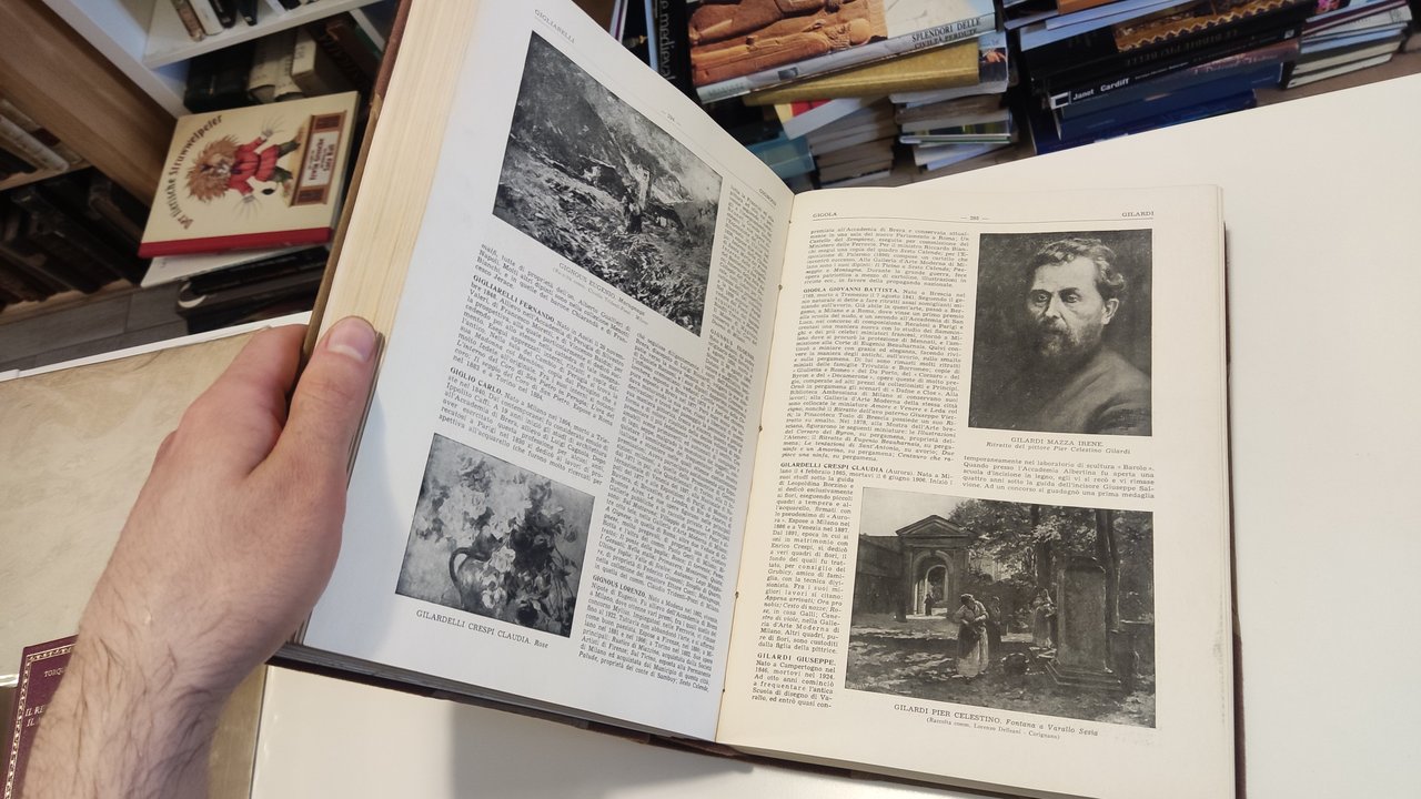 Comanducci - I Pittori italiani dell'Ottocento Dizionario critico e documentario Casa editrice Artisti d'Italia - 1934 Bella edizione in mezzapelle molto ben conservata. Libro in ottime condizioni, minimi segni del tempo. Non esitate a contattarci per altre foto o richieste. Saremo lieti di soddisfare ogni vostra esigenza.