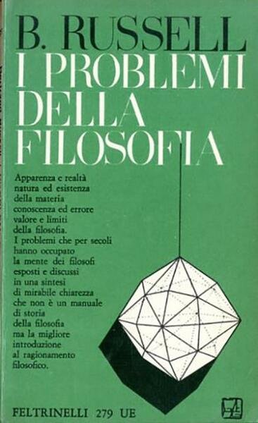 4. ed. 192 p. ; 18 x 11 cm. Universale Economica, 279. ‟Bertrand Russell (1872-1970) scrisse questa celebre introduzione alla filosofia nel 1911 e la pubblicò nel gennaio del 1912. Da allora è stata letta da generazioni di studenti e studiosi di filosofia dentro e fuori le università. Il libro appartiene a uno dei periodi della carriera di Russell più fertili dal punto di vista filosofico. Titolo originale dell'opera: "The problems of philosophy". Traduzione di Elena Spagnol. Brossura editoriale, coperta in cartoncino flessibile plastificato lucido di colore verde. Leggero ingiallimento dal tempo delle pagine, firma di appartenza sul frontespizio, qualche sottolineatura a penna alla p.7, per il resto libro integro. Codice libreria 7935.