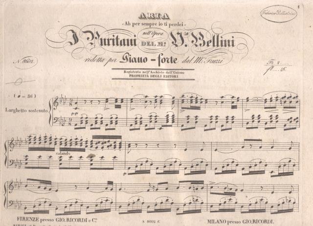 I PURITANI (1835). Aria "Ah per sempre io ti perdei". Ridotta per Pianoforte dal M° Truzzi (Pl.n°8602).