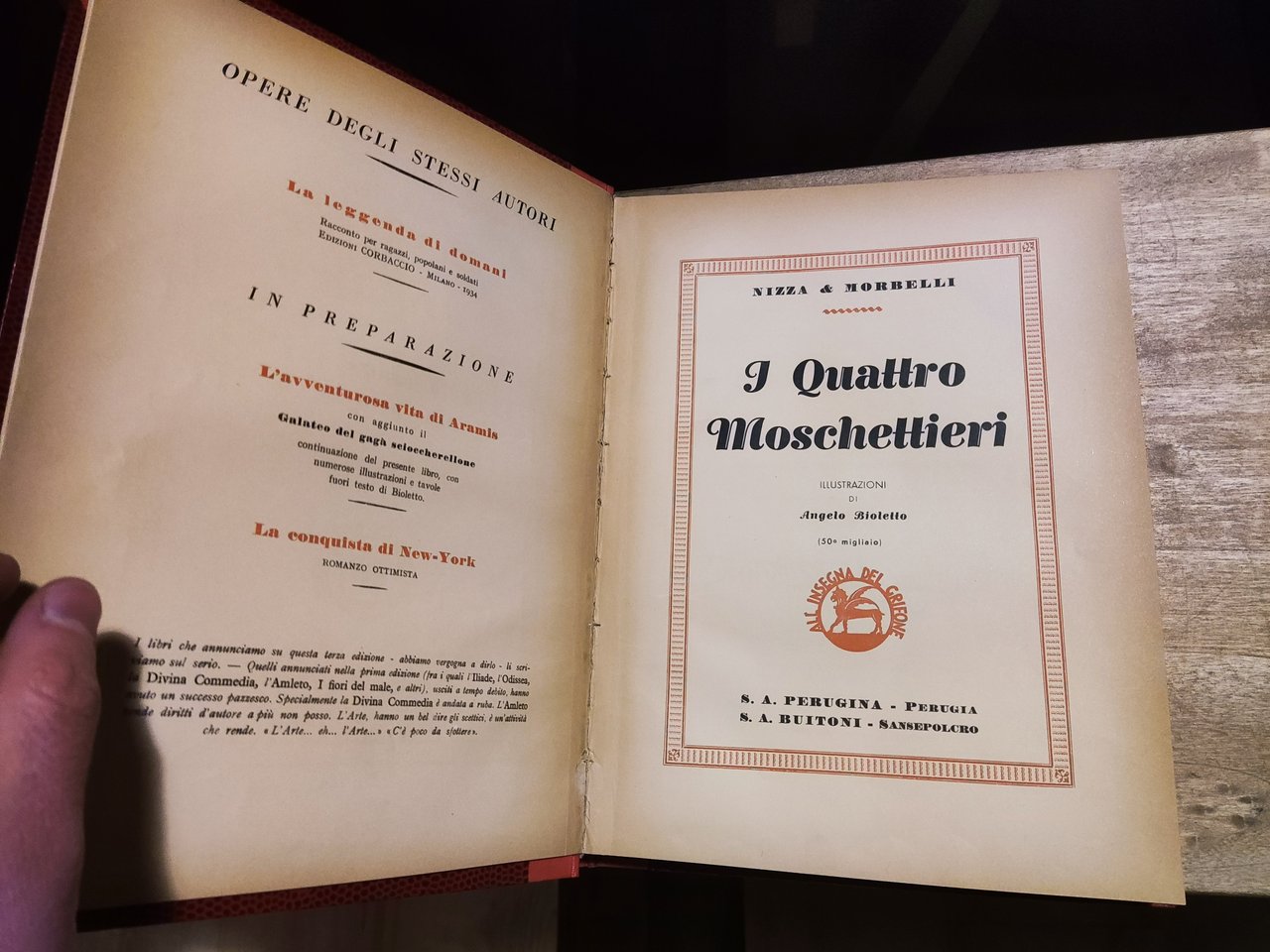 Nizza e Morbelli - I quattro moschettieri Perugina, Buitoni 1936 Illustrazioni di Angelo Bioletto Libro in ottime condizioni, minimi segni del tempo, volume con bella rilegatura. Non esitate a contattarci per altre foto o richieste. Saremo lieti di soddisfare ogni vostra esigenza.