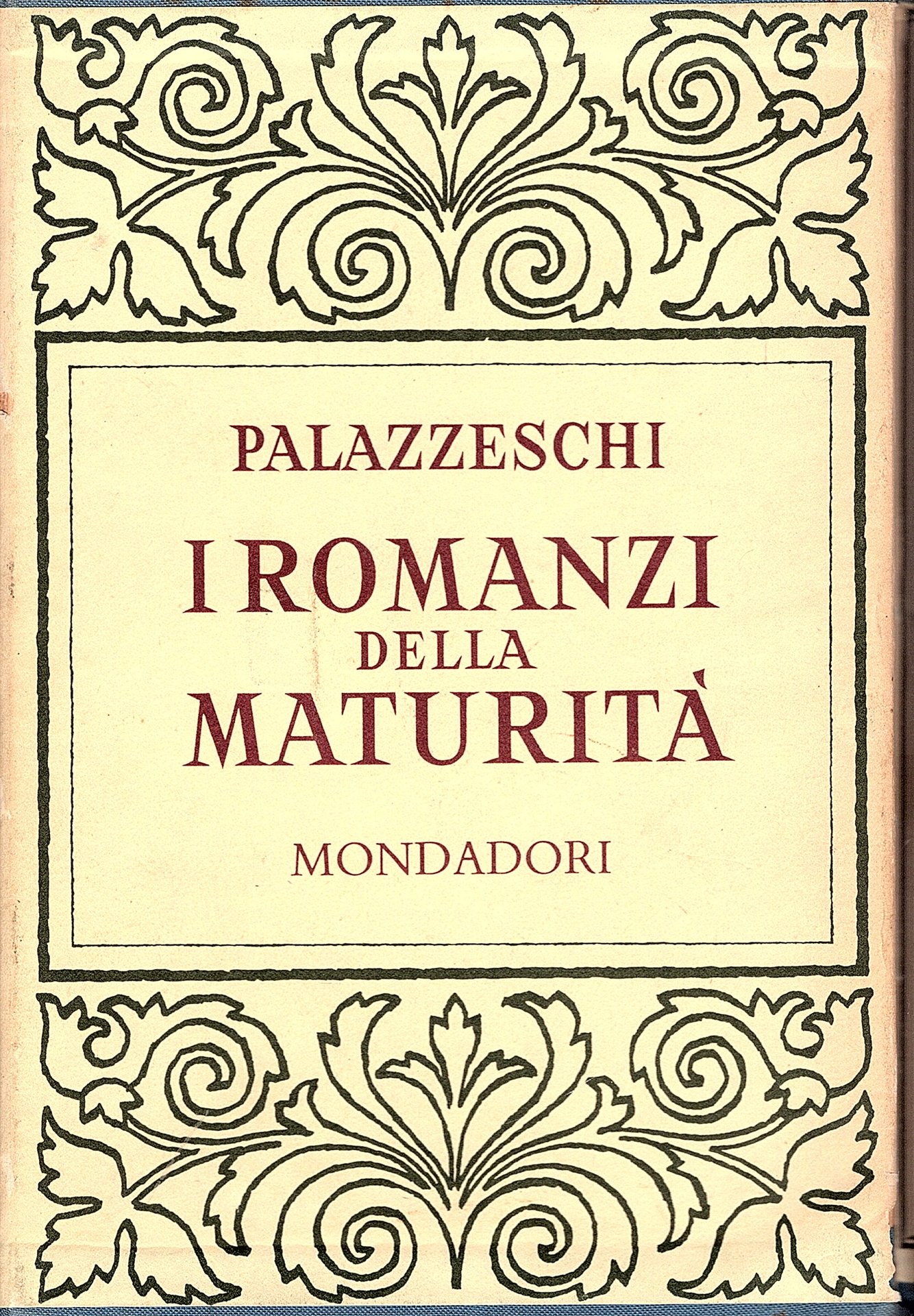 In-8 ° (20x14 cm), tela blu editoriale con titoli dorati al dorso, sovracoperta figurata al tratto con titoli in rosso al dorso e al piatto anteriore, alette paratestuali, cofanetto cartone con titoli ai piatti. Tutte le opere di Palazzeschi, V. Pp. 1055, (1), ritratto inciso dell'autore protetto da velina a specchio del frontespizio, facsimile di lettera autografa ripiegata in tasca al contropiatto anteriore. Testo stampato su carta Oxford. Una firma di appartenenza alla carta bianca anteriore. Minimi segni del tempo alla sovracoperta ma più che buon esemplare. Elegante edizione originale in raccolta dei seguenti romanzi: Sorelle materassi; I fratelli Cuccoli; Roma.