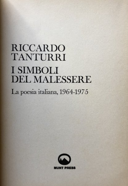 I SIMBOLI DEL MALESSERE. LA POESIA ITALIANA (1964-1975) | Libros antiguos y modernos | Riccardo Tanturri