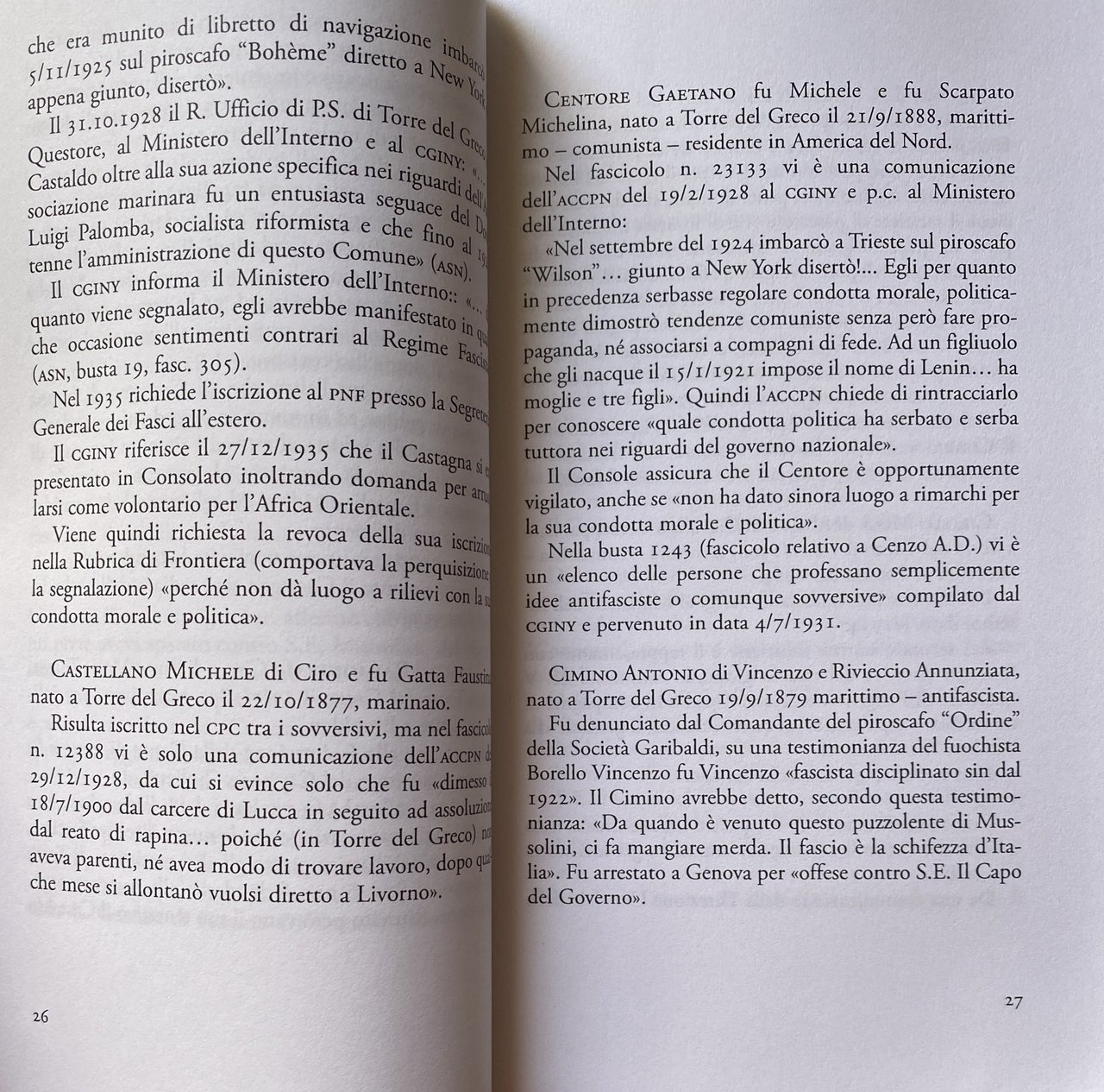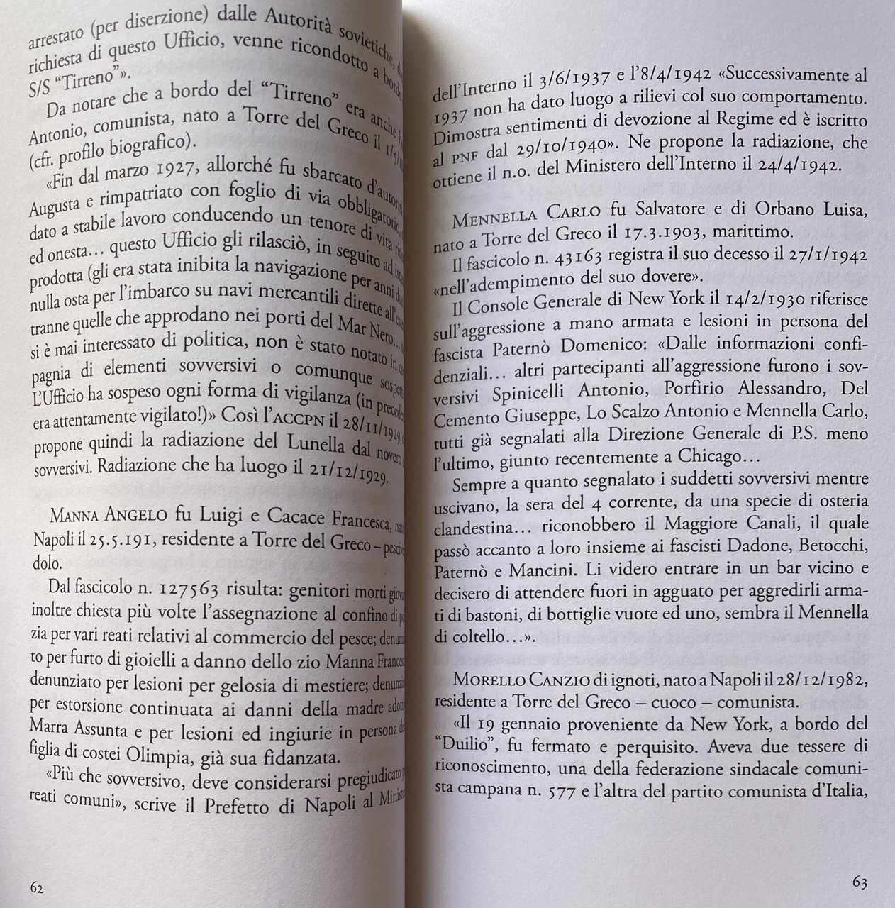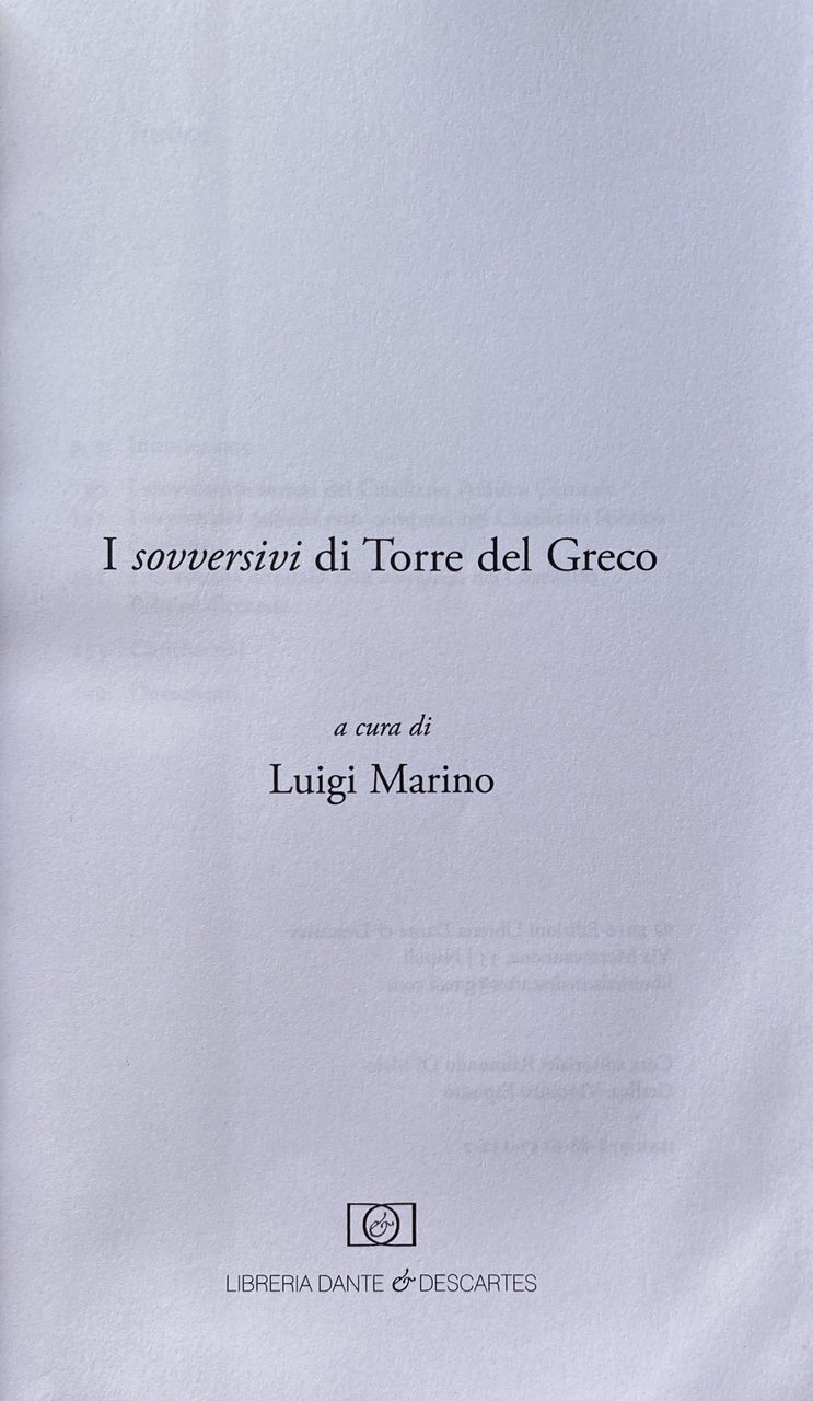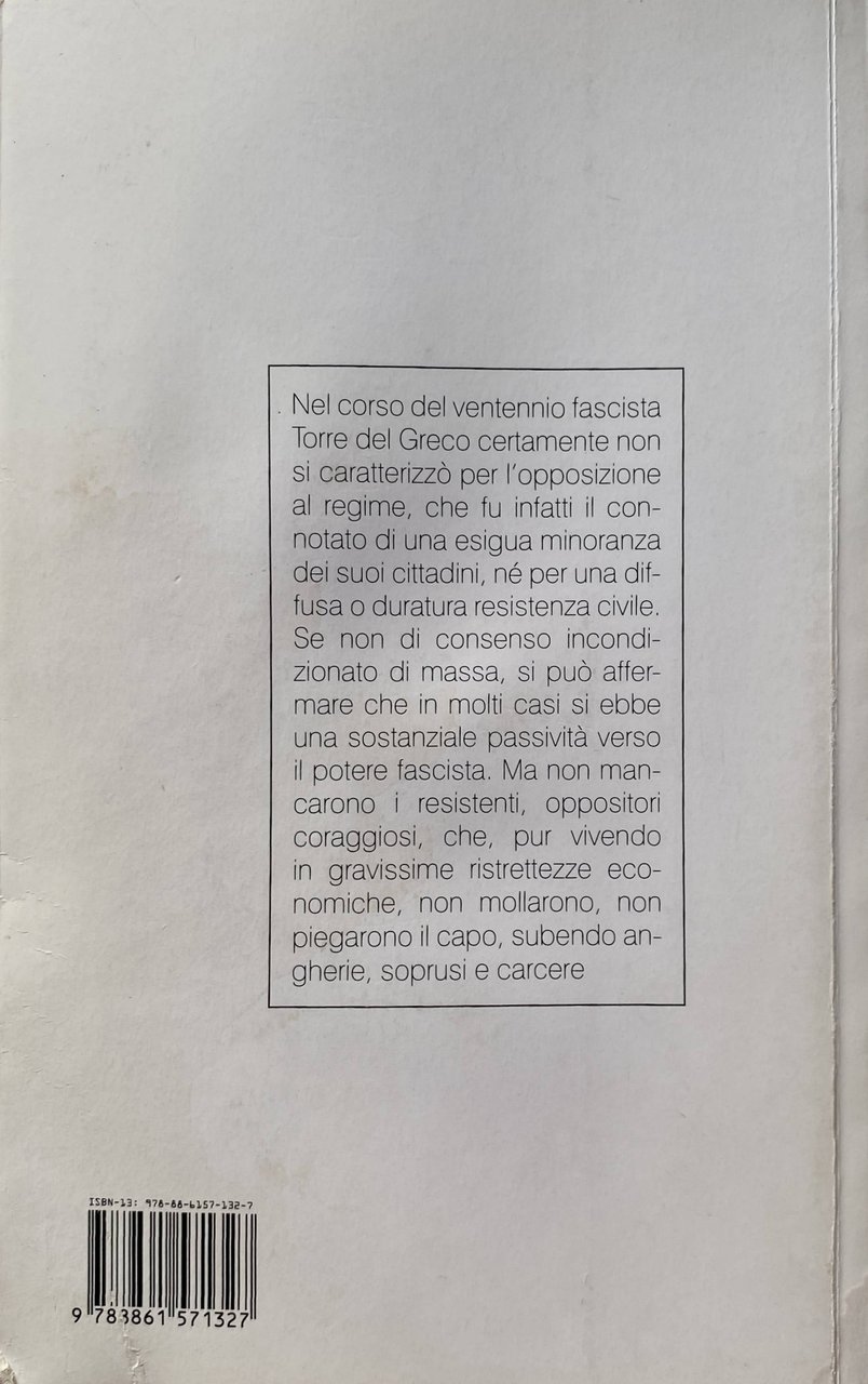 - Storia locale, Torre del greco, Torresi, Antifascismo, Resistenza, Sovversivi, Napoli, Casellario Politico Centrale, Elenchi, Comunismo, Socialismo, Anarchismo, Opposizione, Sovversione, Comunisti, Anarchici, Antifascisti, Oppositori, Dissidenti, Polizia, Regime fascista, Marittimi, Lavoratori, Partigiani, Seconda Guerra Mondiale, Rivoluzionari, Rivoluzione, Libri rari, Saggi politici, Politica, Società, Attività sovversive