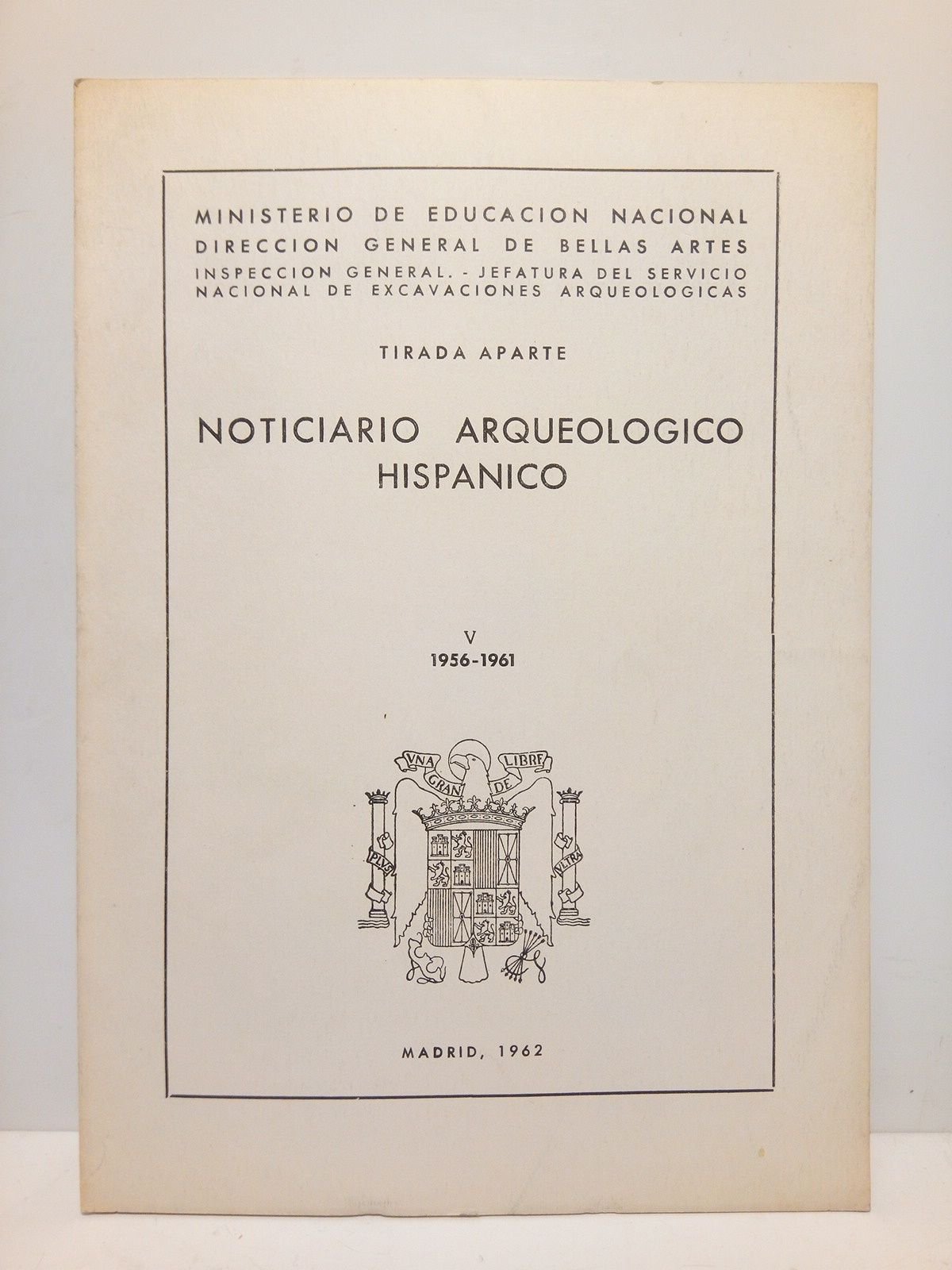 Madrid: Ministerio de Educación Nacional, 1962.- Una página con número 49: Delante van 3 láminas a doble cara en papel cuche; 4º (24,4 x 17,1 cm); Rústica Ed.- Tirada aparte: Noticiario Arqueológico Hispánico. V. 1956-1961 (Ministerio de Educación Nacional - Direc- Gral de Bellas Artes - Inspección Graleneral - Jefatura del Servisio Nac. de Excavaciones Arqueológicas).- RARO.* Excelente estado. PALEONTOLOGÍA, PREHISTORIA Y PROTOHISTORIA