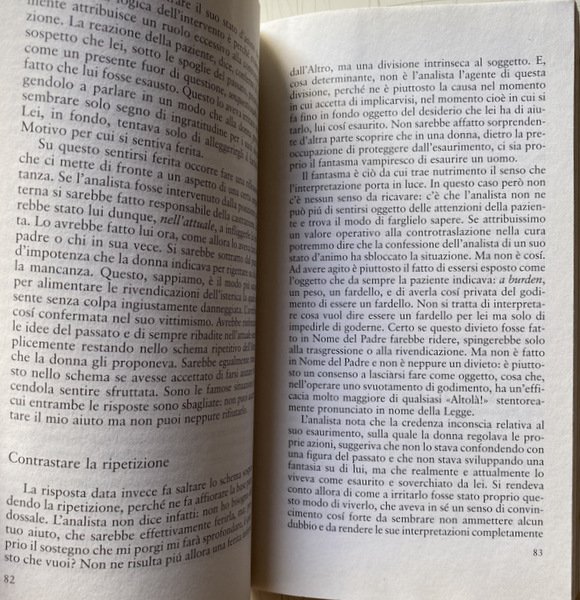 È qui che - secondo l'autore - si realizza il "buon uso dell'inconscio", nel tentativo di un superamento di certezze e pregiudiziali inconsce che impediscono al soggetto di essere più aperto all'Altro e alla sorpresa che da questo può venire nella relazione. Un superamento che, però, non significa, ingenuamente, totale svincolamento da esse e assenza di qualsivoglia ripetizione, ma semplicemente "ridimensionamento" di quanto lo sommergeva condannandolo al sempre uguale e bloccandone il divenire. Alioscia Boschiroli.