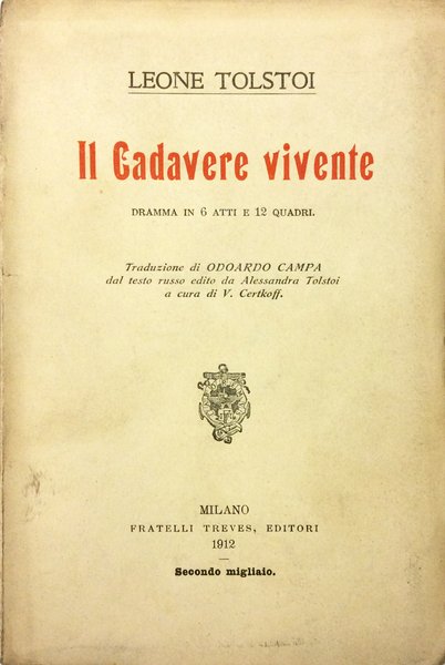 IL CADAVERE VIVENTE. - Dramma in 6 Atti e 12 Quadri. Traduzione di Odoardo Campa dal testo russo edito da Alessandra Tolstoi a cura di V. Certkoff.