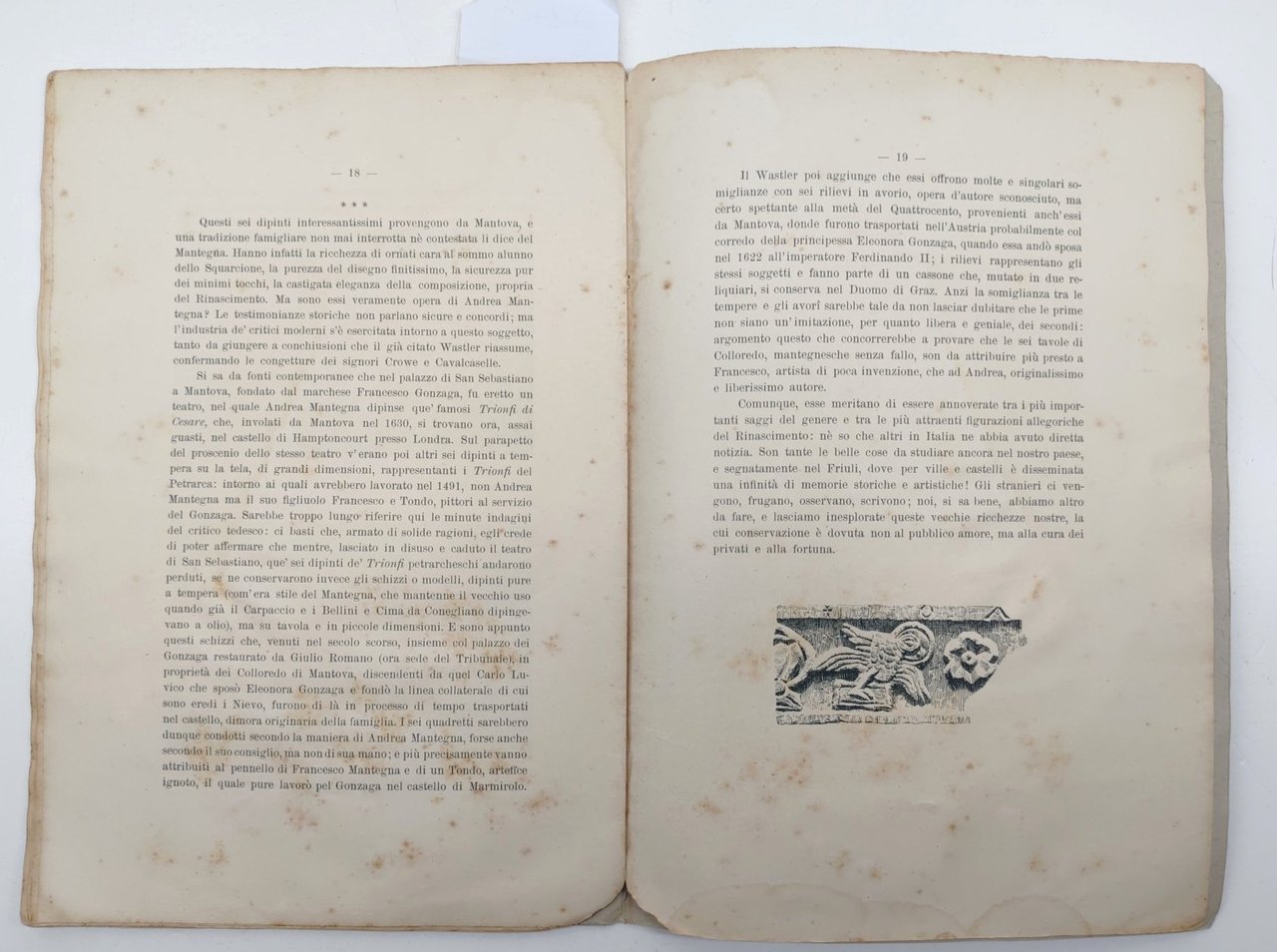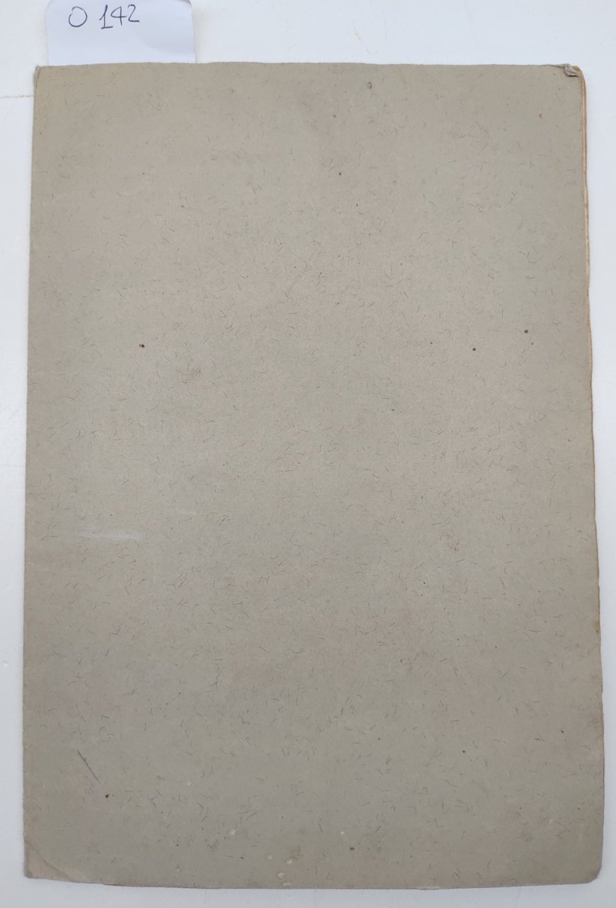 legatura morbida muta in condizioni accettabili, tagli irregolari bruniti, frontespizio con fioriture diffuse, numero di catalogazione a matita al margine superiore e timbro, interno in condizioni accettabili, fioriture diffuse alle pagine interne che non impediscono la lettura, quasi a fogli sciolti, un alone di umidità al margine inferiore alle ultime pagine, numero pagine 20 dimensioni cm 27 x 18,7