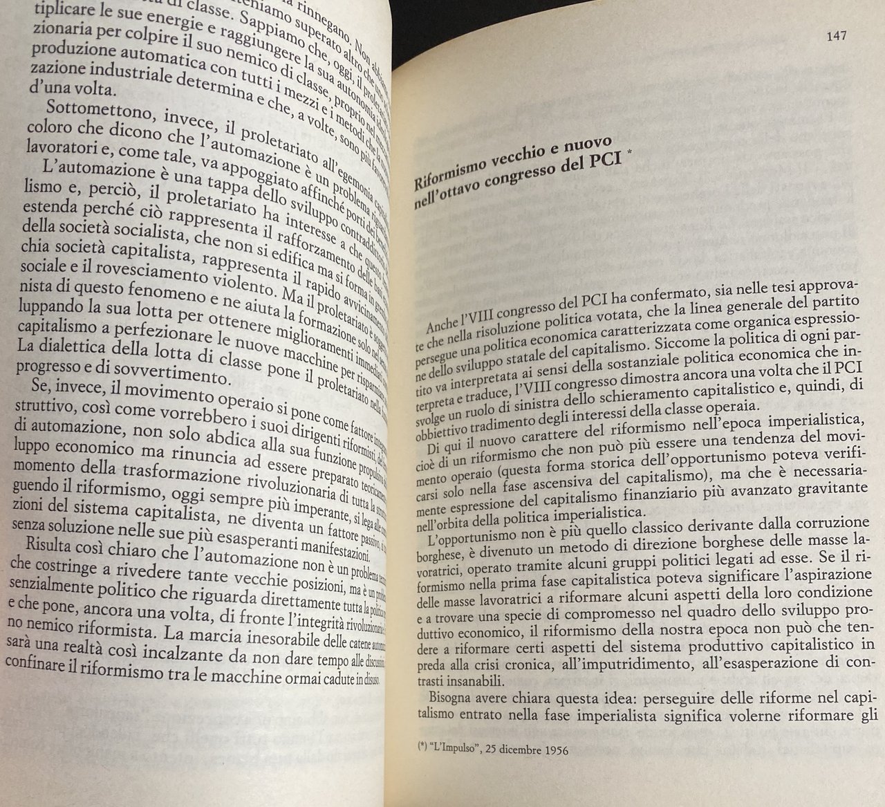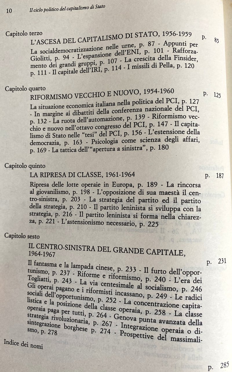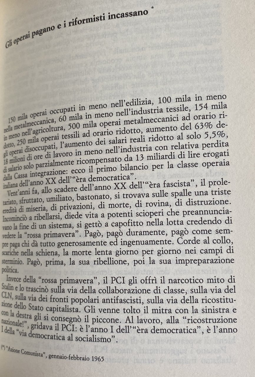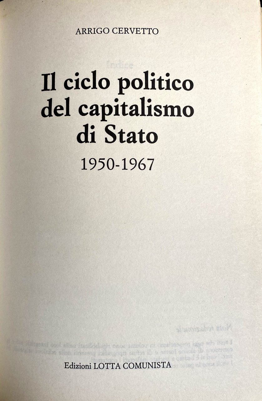 Soggetti: Economia politica Capitalismo di Stato Imperialismo Comunismo Ideologie politiche Pensioni Sistema Giuliano Pace Lotta ILVA Parlamento Cicli economici Centrismo Riformismo Anni Cinquanta Dopoguerra Ricostruzione Capitale Reddito nazionale Resistenza Lavoro Compromesso storico Yalta Piano Vigorelli Programmi Disoccupazione Internazionalismo Lettere Condannati a morte Valle Padana Movimento operaio Lotta di classe Contadini Operai Sindacalismo Sindacati Diritti sociali Attualità Questione Alloggi Condizione operaia Nazionalizzazioni Esproprio proprietà privata Socialismo Elezioni Social-democratizzazione Urne Giolitti Industria ENI Grandi gruppi Monopolio Finsider Acciaierie IRI Missili Pella PCI Partito comunista Dibattiti Congressi Automazione Disoccupazione Inflazione Profitto Tesi Democrazia Psicologia Apertura Sinistra Lotte operaie Europa Scioperi Manifestazioni Giovanilismo Opposizione Strategia Leninismo Marxismo Unione Sovietica Russia Astensionismo Opportunismo Riforme Palmiro Togliatti Concentrazione capitalistica Classe operaia Torino Genova Rivoluzione Borghesia Borghese Integrazione Massimalismo Partecipazioni statali Sviluppo economico Istituzioni Primato Teorie Totalitarismo URSS dominante Liberismo Scambio Sfruttamento Forza-lavoro Produzione Plusvalore Merce Alienazione Profitto CECA CGIL Confindustria CLNAI De Gasperi DC Giuseppe Di Vittorio Amendola Adenauer AGIP Engels FIAT General Motors Lenin Marx Matteotti Enrico Mattei Petrolio Fascismo Mussolini EDISON Montecatini SIP SNAM SME Saragat Scoccimarro PSI Romita Pirelli STET Stalin Bruno Trentin Valletta Trotsky Auto Bianchi Ferrovie Getty Oil Luigi Longo Krusciov Gramsci Marshall Mossadeq Phillips Alfa Romeo Bernstein Cotonificio Cantoni De Gaulle Keynes Kautsky FGCI Finmeccanica La Pira La Malfa Falk Lancia Gronchi Pajetta Pietro Nenni Pubblica Utilità Saggistica Libri rari fuori catalogo Storici Collezionismo Articoli Libertario Mercato l'Unità L'impulso Siderurgia Azione comunista Metallurgica Rosa Luxemburg Einaudi Iran Egemonia Concessioni Utili Golfo Persico Medio Oriente Financial Times Agricoltura CISL Licenziamenti Metalmeccanica Edilizia Tessile Political economy State capitalism Imperialism Communism Political ideologies Pensions System Peace Struggle Parliament Economic cycles Centrism Reformism Fifties Post-war Reconstruction National income Resistance Historic compromise Plan Programs Unemployment Internationalism Letters Sentenced to death Labor movement Class struggle Peasants Workers Trade unionism Unions Social rights Current affairs Housing question Conditions Nationalizations Expropriation Private property Socialism Elections Industry Large groups Monopoly Steel mills Missiles Communist party Debates Congresses Automation Unemployment Inflation Profit Theses Democracy Psychology Opening Left Struggles Europe Strikes Demonstrations Youth movement Opposition Strategy Leninism Marxism Soviet Union Abstentionism Opportunism Reforms Capitalist concentration Working class Turin Genoa Revolution Bourgeoisie Integration Maximalism State participations Economic development Institutions Primacy Theories Dominant totalitarianism Liberalism Exchange Exploitation Force Production Surplus Value Goods Alienation Profit Fascism Cars Railways Cotton Mill Public Utility Non-fiction Rare Books Out of Print Historical Collectibles Articles Libertarian Market Steel Industry Communist Action Metallurgical Hegemony Concessions Profits Persian Gulf Middle East Agriculture Layoffs Metalworking Construction Textile