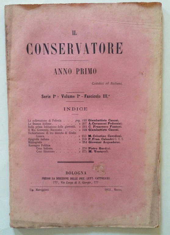 Il Conservatore Mensile 1863 Cavazzoni Pederzini La Sollevazione di Polonia
