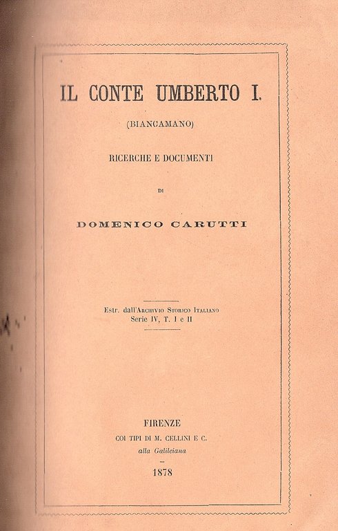 Il Conte Umberto I (Biancamano) e il Re Ardoino. Ricerche e documenti. Estratto dall' Archivio Storico Italiano Serie IV. T. I e II