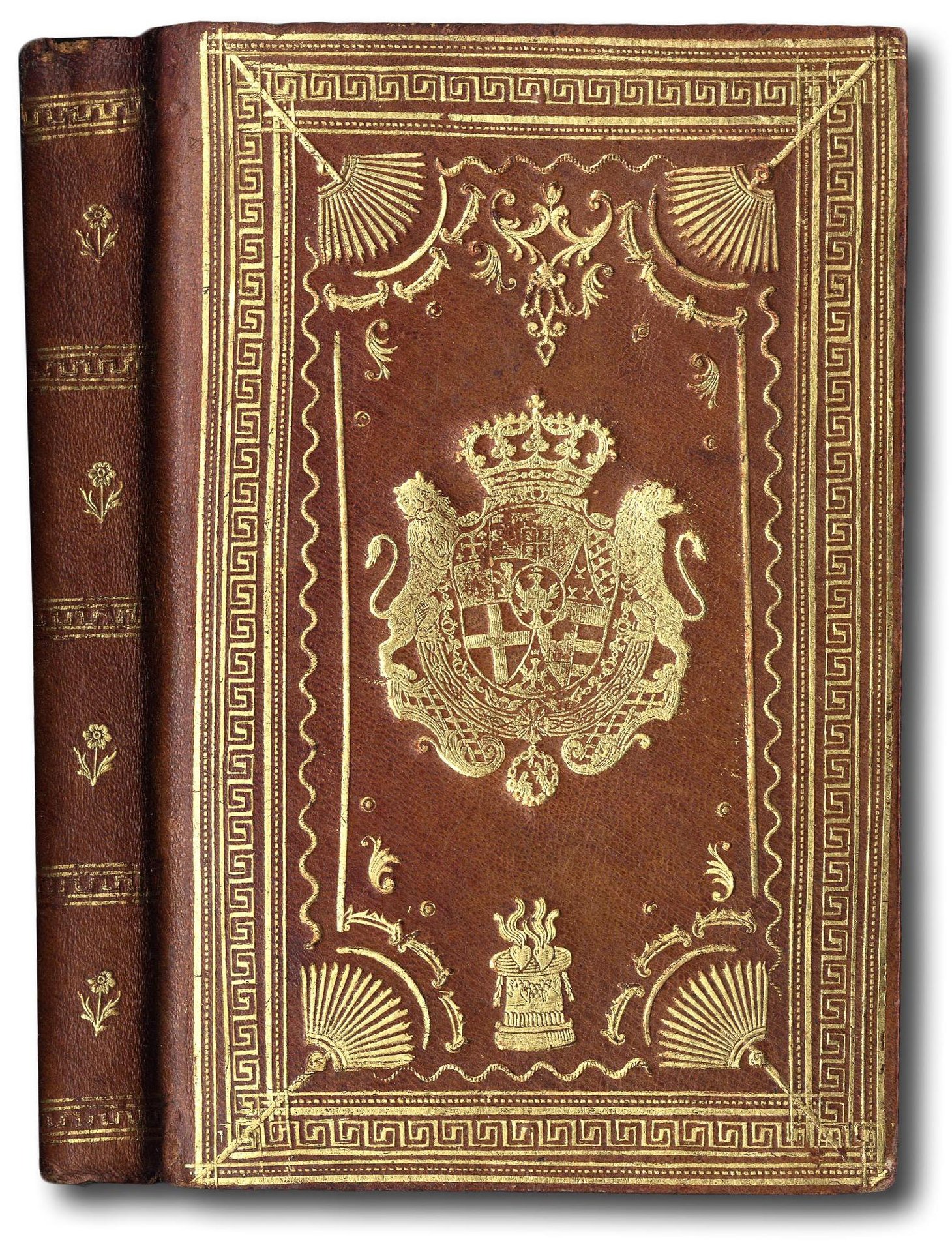 >in-24 (164x105mm), pp. 243, (1) con vignette zodiacali, testatine e finalini. Bella legatura coeva in zigrino nocciola, i piatti adorni di elaborata bordura neoclassica con fregi a rotella, al centro grande blasone di casa Savoia, tagli dorati, ventagli angolari e pozzo sormontato da due cuori. Il Palmaverde vide la luce nel 1722 presso l'editore Fontana, costruito sul modello dell'Almanac Royal francese, fu l'almanacco della corte fino al 1774, anno in cui la Stamperia Reale iniziò la pubblicazione del Calendario della Real Corte. In origine esso riportava, oltre alle solite rubriche e alle previsioni sul clima, sul raccolto, sulla salute, un quadro completo della corte e delle cariche politiche e religiose del paese. A metà del Settecento, quando cominciarono ad affermarsi gli almanacchi con compendio, il Palmaverde si specializzò, fornendo un quadro ancora più completo delle istituzioni. Raggiunse tirature altissime (da un'indagine condotta nel 1783 risulta che se ne vendessero 18.000 copie all'anno), mantenendo inalterato il suo successo anche dopo l'entrata in scena del Calendario della Real Corte, di costo peraltro molto elevato per la raffinatezza della stampa e della legatura. Bell'esemplare.