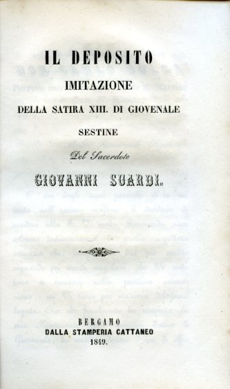 Il Deposito. Imitazione della Satira XIII di Giovenale. Sestine | Libros antiguos y modernos | Suardi Giovanni