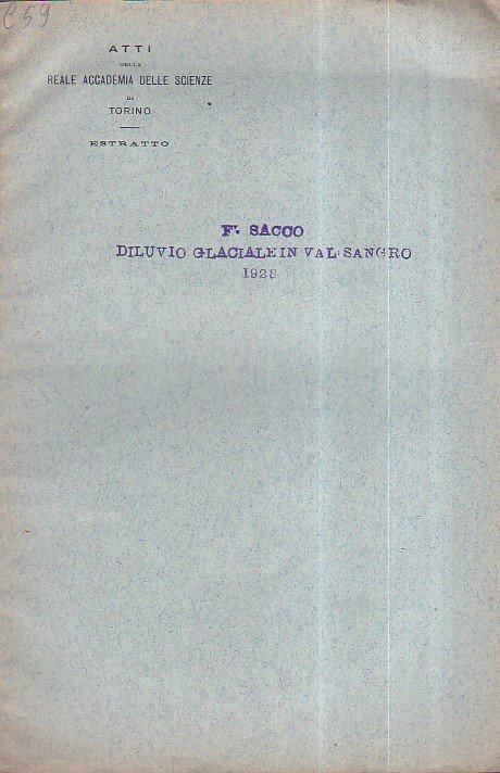 Il Diluvio glaciale nell' alta Valle del Sangro (Abruzzi). Nota | Libros antiguos y modernos | Sacco Federico