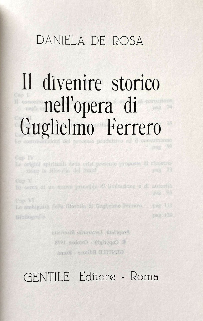 IL DIVENIRE STORICO NELL'OPERA DI GUGLIELMO FERRERO | Libros antiguos y modernos | Daniela De Rosa