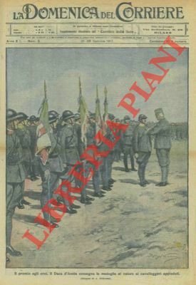 Il Duca d'Aosta consegna le medaglie al valore ai cavalleggeri appiedati.