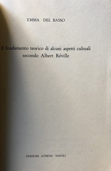 IL FONDAMENTO TEORICO DI ALCUNI ASPETTI CULTUALI SECONDO ALBERT RÉVILLE | Libros antiguos y modernos | Emma Del Basso