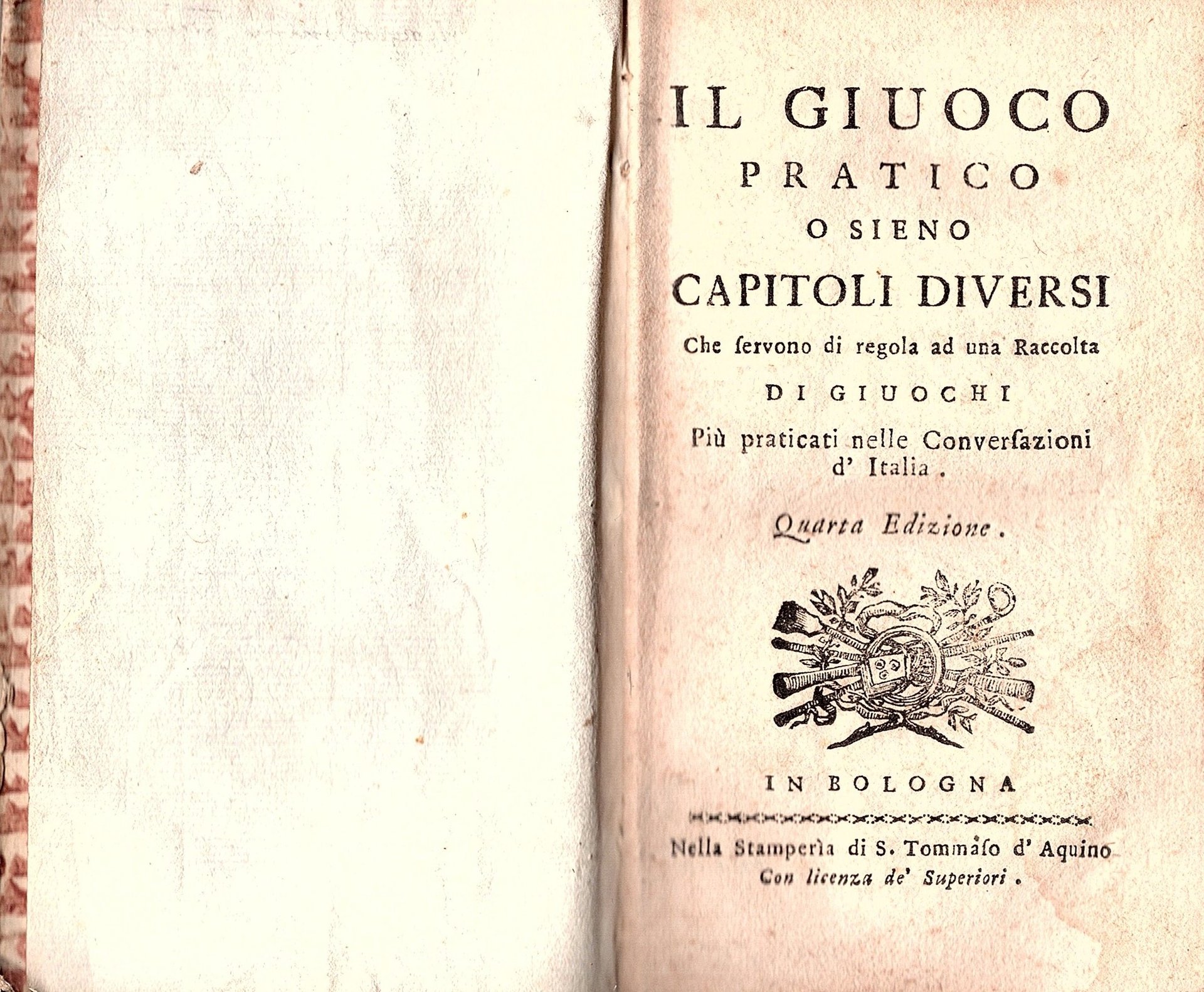 Il giuoco pratico o sieno capitoli diversi che servono di regola ad una raccolta di giuochi piu praticati nelle conversazioni d'Italia. Quarta edizione