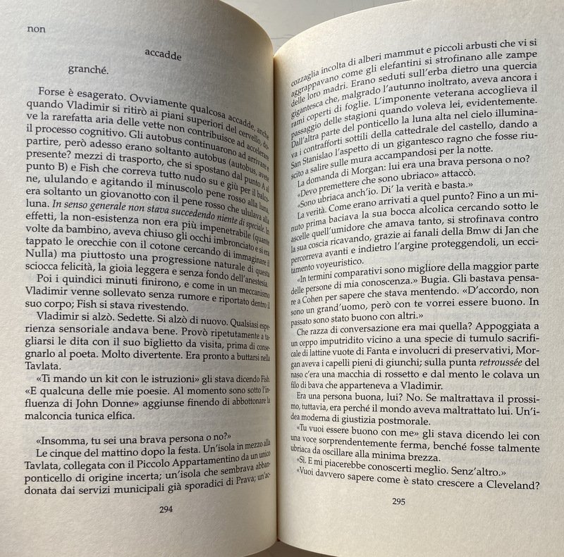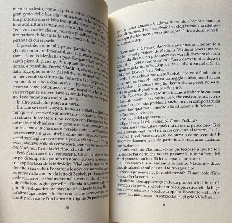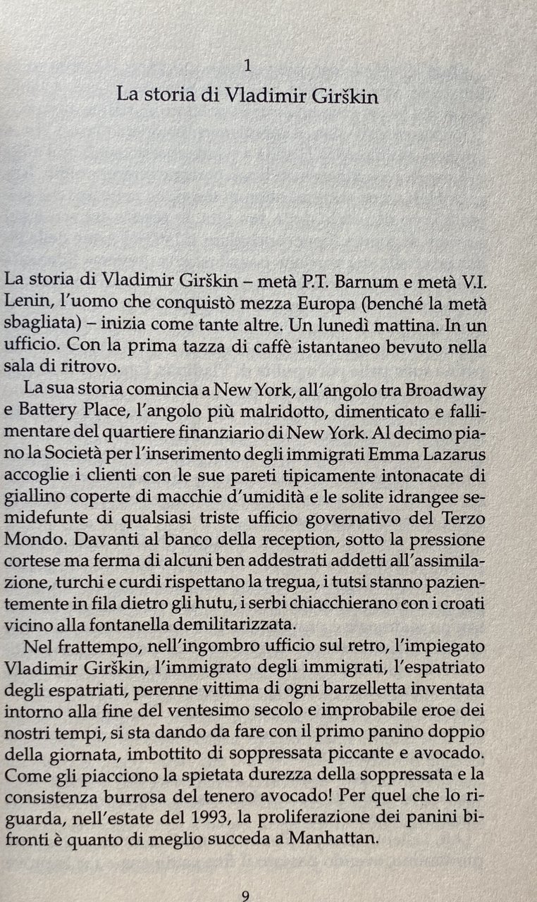 La sua prosa incalzante e coinvolgente, la vivacità e il vitalismo dei suoi personaggi, il senso infallibile delle atmosfere e degli ambienti, catturano fin dalla prima riga e non smettono di sorprendere. Siamo tutti un po' come Vladimir, vittime di un bisogno d'appartenenza che continuamente ci sfugge.