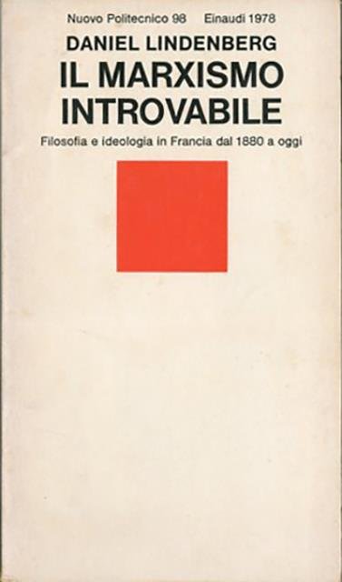 197 p. ; 18 x 11 cm. Nuovo politecnico, 98. La polemica di Lindenberg, tesa e aggressiva, sostenuta costantemente da una carica militante, si rivolge contro i cultori di una pratica accademica del marxismo, ma anche contro i neofiti di una sua facile liquidazione: non si cambia un cavallo privo di un occhio con un ronzino cieco. Titolo originale dell'opera: «Le marxisme introuvable». Traduzione di Settimio Severo Caruso. Brossura editoriale, coperta in cartoncino flessibile plastificato e colorato (b/n e rosso). Qualche segno del tempo alla copertina e ai tagli, firma di appartenenza nel frontespizio, per il resto esemplare integro. Codice libreria 7784.