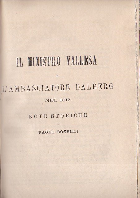 Il Ministro Vallesa e l' ambasciatore Dalberg nel 1817. Note storiche | Libros antiguos y modernos | Boselli Paolo