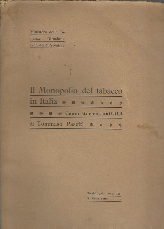 IL MONOPOLIO DEL TABACCO IN ITALIA - CENNI STORICO - STATISTICI