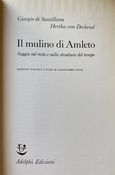IL MULINO DI AMLETO. SAGGIO SUL MITO E SULLA STRUTTURA DEL TEMPO. EDIZIONE ITALIANA A CURA DI ALESSANDRO PASSI | Libros antiguos y modernos | Giorgio De Santillana, Hertha Von Dechend, Alessandro Passi