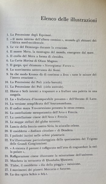 Soggetti: Antropologia culturale, Studi culturali, Scienze sociali, Critica, Psicologia, Popoli primitivi, Filosofia, Interpretazione, Mentalità, Riti, Rituali, Culture arcaiche, Miti, Mitologia, Letteratura, Linguaggio, Religioni comparate, Credenze, Storia della scienza, Simbolica, Sirio, Antiche civiltà, Babilonia, Grecia, Indonesia, Oceania, Medio Oriente, India, Cina, Polinesia, Egitto, America precolombiana, Mar del Nord, Mediterraneo protostorico, Vicino Oriente, Africa, Storiografia, Scorrere del Tempo, Eudosso, Fato moderno, Destino, Mondo arcaico, Cosmologia, Astrologia, Religione, Spiritualità, Libri illustrati, Riferimento, Consultazione, Bibliografia, Testi sacri, Iran, Filosofia greca, Islam, Coranica, Mazdeismo, Gnosi ismailita, Sciita iraniano, Persia, Cielo, Dèi, Illustrazioni, Citazioni, Poemi, Auflage, Cristianesimo, Vedismo, Ebraismo, Croce, Simbolismo religioso mitico, Z. Sitchin, Orbite, Pianeti, Tradizione ebraica, Iconografia, Iconologia, Processione, Equinozio, Hancock, Bauval, West, Teorie antropologiche, Matematica, Calcolo, Archeologia, Evoluzione, Razionalismo, Pensiero scientifico, Antichità, Arabi, Aristotele, Democrito, Platone, Luna, Matematiche, Materia, Meccanica, Athanasius Kircher, Gilgamesh, Madre Terra, Stelle, Kalevala, Misure, Segni, Piramidi, Costellazioni, Fenomenologia, Equinozio, Solstizio, Sole, Saisons, Solstices, équinoxes, Mythologie comparée, Phénomène de la précession, Edda nordique, L'Odyssée, Épopée, Bible, Erodoto, Linguistica, Tavole, Mahabharata, Timée, Phédon, L'Enfer, Dante, Divina Commedia, Omero, Odissea, Bibbia, Saghe nordiche, Racconti, Leggende, Fiabe, Le moulin d'Hamlet: la connaissance, origine et transmission par les mythes, Culti, Indonesien, Ozeanien, El molino de Hamlet: los orígenes del conocimiento humano y su transmisión a través del mito, Archaische Kosmologie, Berzelius, Mohr, Wöhler, Fetonte, Galassie, Universo, Pan, Morte, Prometeo, Fuoco, Finlandia, Cronisti, Cronache, Sciamanesimo, Titani, Sansone, Mostri, Fiumi, Kronos, Meru, Maya, Sumeri, Assiri, Babilonesi, Mesopotamia, Semiti, Arco, Freccia, Dendera, Zodiaco, Orbite, Maschere, Danze, Huwawa, Selkis, Egizi, Imperi, Congiunzioni astrali, Poliedri, Figure geometriche, Zeus, Misure, Olaus Magnus, Cartografia, Demiurgo, Dio, Creazione, Poli, Horus, Seth, Tlaloc, Mercurio, Saturno, Movimenti, Spazio, Gorgo, Scorpione, Scarabeo, Donne, Calabash, Guinea, Sumatra, Bali, Toba batak, Pesci, Barca, Codici, Ungnad, Pitagora, Uno, Molti, Eraclito, Logica, Jung, Jacobsen, Jastrow, Jensen, Keplero, Kennedy, Krickenberg, Samuel Noah Kramer, Kerényi, Sode, Simrock, Tolomeo, Roscher, de Saussure, Armas Salonen, Frai Bernardino de Sahagun, Yucatan, Zarathustra, Zohan, Yma, Zeus, Sciamani, Tamburi mitici, Mandingo, Tamerlano, Tahiti, Teogonia, Teodosio, Eternità, Tezcatlipoca, Sacrificio, Trigono, Toro, Uccello zu, Venere, Vainamoinen, Utnapistim, Ursanabi, Ulisse, Via Lattea, Segni zodiacali, Saxo Grammaticus, Vergine, Sagittario, Cancro, Carro, Sampo, Sanscrito, Sciamanismo, Schroder, Scorpione, Eden, Serpente, Kay Khusraw, Amleto, Shakespeare, Orsa maggiore, Socrate, Fedone, Strumenti musicali, Stige, Esiodo, Demiurgo, Efesto, Dio, Wieland, Ptah, Ilmarinem, Viracocha, Enki, Ea, Goinbiu, Tane, Archeologia, Reperti archeologici, Utensili, Esplorazioni, Viaggio, Dupuis, Origine, Odissea, Ovidio, Pan, Penelope, Pegaso, Ogigia, Omero, Orfeo, Orione, Matematiche, Pitagorici, Osiride, Plutarco, Pleiadi, Polinesia, Poesia, Ipparco, Proclo, Reincarnazione, Karma, Ra, Marduk, Marte, Macrobio, Lethe, Mahabharata, Milton, Paradiso, Messico, Marco Polo, Maometto, Fantascienza, Favole, Influenza, Grotti, Sampo, Mulino, Norvegia, Oceano, Nord, Nergal, Newton, Holmberg, Humbaba, Indiani, Cherokee, Kala, Gange, Kipling, Kullervo, Firdusi, Finlandia, Fisica, Stoici, Abu Ma asar, Fiumi mitici, Oro, Estonia, Fenja, Menja, Fetonte, Freyr, Giove, Grimm, Gorgo, Griaule, Adamo, Eva, Cristoforo Colombo, Purgatorio, Inferno, Virgilio, Inferi, Davide, Demetra, Creta, Arca, Diluvio, Noè, Ebrei, Eridu, Misteri, Eleusi, Enkidu, Anime, Animali, Anu, Ariete, Argo, Argonauti, Avesta, Auriga, Astronomia, Nicaragua, Honduras, Dea egizia, Libri Vintage Fuori catalogo, Saggistica, Die Mühle des Hamlet. Ein Essay über Mythos und die Struktur der Zeit, Collezionismo, Ade, Cultural anthropology, Cultural studies, Social sciences, Criticism, Psychology, Primitive peoples, Philosophy, Interpretation, Mentality, Rites, Rituals, Archaic cultures, Myths, Mythology, Literature, Language, Comparative religions, Beliefs, History, Science, Symbolic, Sirius, Ancient civilizations, Babylon, Greece, Indonesia, Oceania, Middle East, China, Polynesia, Egypt, Pre-Columbian America, North Sea, Protohistoric Mediterranean, Near East, Historiography, Passage of time, Eudoxus, Modern fate, Destiny, Archaic world, Cosmology, Astrology, Religion, Spirituality, Picture books, Reference, Consultation, Bibliography, Sacred texts, Greek philosophy, Koranic, Mazdeism, Ismaili gnosis, Iranian Shiite, Heaven, Gods, Illustrations, Quotes, Poems, Christianity, Vedism, Judaism, Cross, Mythical religious symbolism, Orbits, Planets, Jewish tradition, Iconography, Iconology, Procession, Equinox, Anthropological theories, Calculation, Archeology, Evolution, Rationalism, Scientific thought, Antiquity, Arabs, Aristotle, Democritus, Plato, Moon, Mathematics, Matter, Mechanics, Mother Earth, Stars, Measurements, Signs, Pyramids, Constellations, Phenomenology, Equinox, Solstice, Sun, Herodotus, Linguistics, Tables, Divine Comedy, Homer, Odyssey, Bible, Nordic sagas, Tales, Legends, Fairy tales, Cults, Phaeton, Galaxies, Universe, Death, Prometheus, Fire, Chroniclers, Chronicles, Shamanism, Titans, Samson, Monsters, Rivers, Sumerians, Assyrians, Babylonians, Mesopotamia, Semites, Bow, Arrow, Dendera, Zodiac, Orbits, Masks, Dances, Egyptians, Empires, Astral conjunctions, Polyhedra, Geometric figures, Measurements, Cartography, Dem