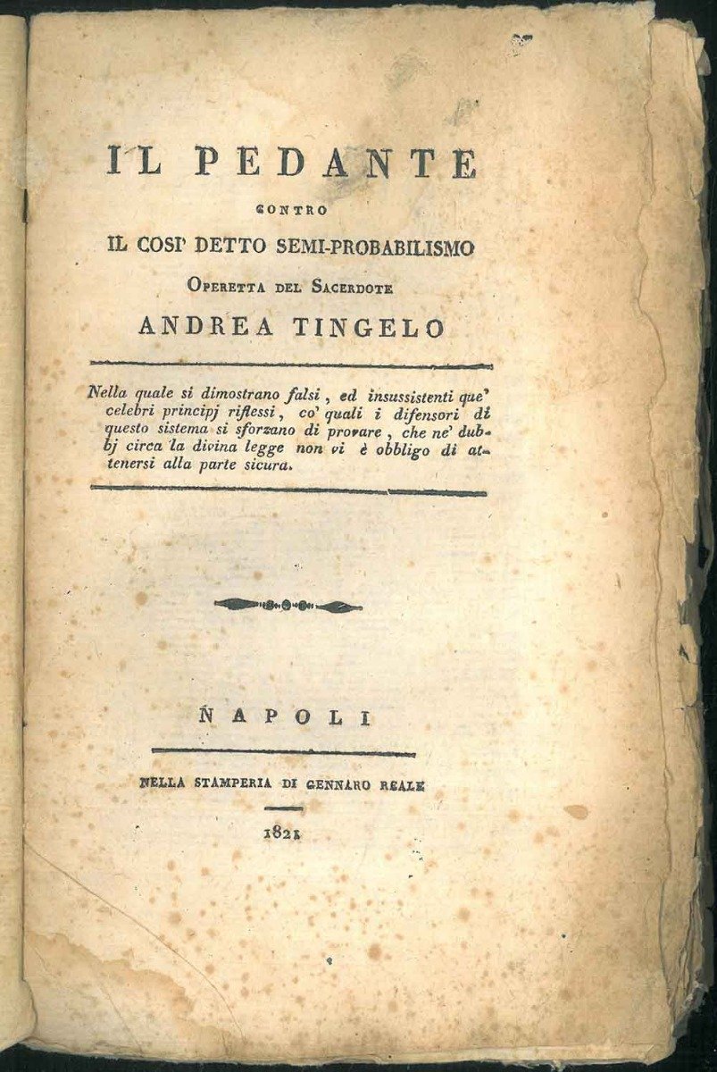 Il pedante contro il così detto semi-probabilismo. Operetta del Sacerdote Andrea Tingelo