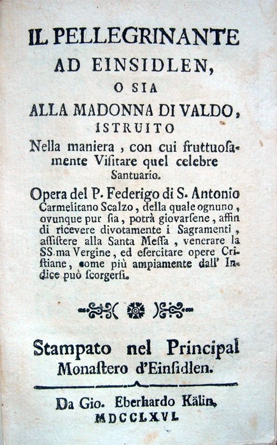 Il pellegrinante ad Einsidlen, o sia alla Madonna di Valdo, istruito nella maniera con cui fruttuosamente visitare quel celebre santuario. Opera del P. Federigo di S. Antonio Carmelitano Scalzo, della quale ognuno . potrà giovarsene .