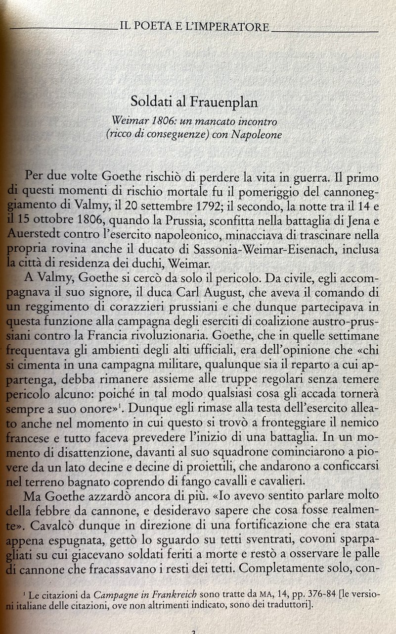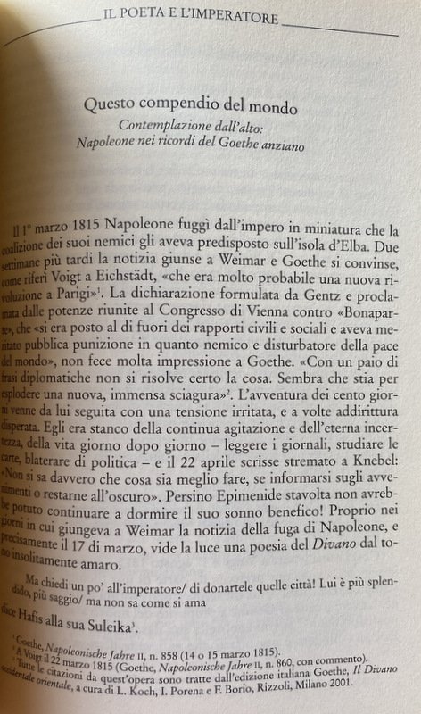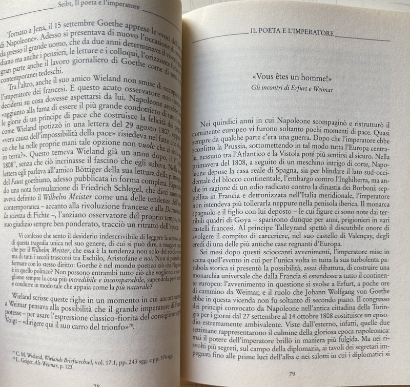 Soggetti: Umanistica, Storia moderna, Napoleone Bonaparte, Germanistica, Occupazione napoleonica, Prussia, Germania, Francia, Impero, Macrostoria, Microstoria, Erfurt, Weimar, Talleyrand, Incontri storici, Personaggi, Storie vere, Diplomazia, Intellettuali, Imperatori, Poeti, Fasto, Intrighi, Potere, Eckermann, Ottocento, Werther, Verosimiglianza, Lotte, Teatro, Letteratura, Nuovo metodo di lingua francese per la lezione pratica, Incontro epocale, Saluto, Imperatore, Conte Reinhard, Ulrike von Levetzow, Hegel, Christoph Martin Wieland, Ecce homo, Filologia, Fonti, Lettere, Biografie, Epistolario, Discorsi, Ricostruzioni, Riferimento, Bibliografia, Saggi storici, Conversazioni, Diario, Memorie, Giacobini, Libertà, Uguaglianza, Campagne militari, Soldati, Letture, Discussioni, Opere, Conquiste, Battaglie, Guerre, Testimonianze, Testimoni, Mit einer Art von Wut: Goethe in der Revolution, Fact and Fiction, Critica letteraria, Rivoluzione francese, Französischen Revolution, Ereignisse, Mainzer Republik, Magonza, Terrore, Dittatura, Bürgerkriegs, Reaktionären Terror, Deutschlands, Idealen, Augenzeuge, Andreas Joseph Hofmann, Armata, Esercito, Geschichte, Jakobiner, Freiheitsbaum, Rheinisch-Deutsche, Freiheit, Gleichheit, Jena, Rheinbund, Mein Kaiser, Valmy, Sassonia, Disfatta, Sconfitta, Murat, Merlin de Thionville, Dorothea, Carl August, Chausseehaus, Caroline Sartorius, Voltaire, Colloqui privati, Faust, Schlegel, Divano occidentale orientale, Guglielmo I, Hohenzollern, Lutero, Zelter, Christiane Vulpius, Stein, Riemer, Talma, Saint-Aignan, Schelling, Schiller, Schopenhauer, Reinhard, Jean Racine, Johannes Muller, Maria Antonietta, Manzoni, Maria Teresa d'Asburgo, Maspero, Metternich, Leopoldo, Knebel, Heine, Hendrich, Kafka, Friedrich Genz, Ludwig Geiger, Fichte, Cotta, Dalberg, Eckermann, Enzensberger, Zar, Russia, Alessandro I, Arnold, Bacchelli, Baretti, Bernhard, Boissereé, Byron, Buchhoz, Codignola, Colloredo, Auguste Comte, Georg Forster, Libri fuori catalogo, Tagebuch, Unterhaltungen deutscher Ausgewanderten, Eckermann, Zelter, Maometto, Restaurazione, Nietzsche, Realismo, Marianne von Eybenberg, Frauerplan, Casa, Relazioni, Paoline, Gran Croce della legione, Karlsbad, Maria Ludovica, Austerlitz, Settecento, Austria, Von Hammer, Jihad, Lietzmann, Recensioni, Scritti, Arno Schmidt, Schriften, Fernow, Bottiger, Humanities, Modern history, Napoleon Bonaparte, German studies, Napoleonic occupation, Prussia, Germany, France, Empire, Macrohistory, Microhistory, Historical encounters, Personalities, True stories, Diplomacy, Intellectuals, Emperors, Poets, Opulence, Intrigue, Power, Nineteenth century, Verisimilitude, Theater, Literature, New French language method for practical lessons, Epochal meeting, Greeting, Emperor, Philology, Sources, Letters, Biographies, Epistolary, Speeches, Reconstructions, Reference, Bibliography, Historical essays, Conversations, Diary, Memoirs, Jacobins, Liberty, Equality, Military campaigns, Soldiers, Readings, Discussions, Works, Conquests, Battles, Wars, Testimonies, Witnesses, Literary criticism, French revolution, Mainz, Dictatorship, Armada, Army, Saxony, Defeat, Private talks, Western Eastern sofa, William I, Luther, Marie Antoinette, Theresa of Habsburg, Tsar, Alexander I, Books out of print, Mohammed, Restoration, House, Relations, Grand Cross of the legion, Maria Ludovica, 18th century, Reviews, Writings