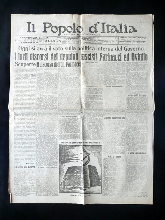 Il Popolo d'Italia Anno VIII N.288 3/12/1921 Discorso Deputati Farinacci Oviglio