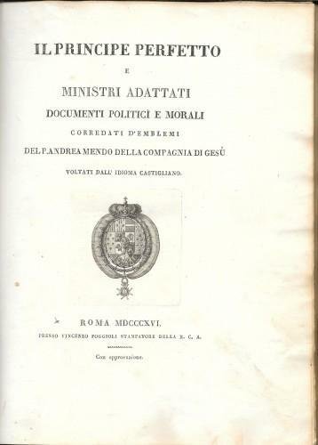 Il Principe Perfetto e ministri adattati. Documenti politici e morali corredati d'emblemi del P. Andrea Mendo della Compagnia di Gesù