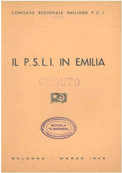 Il PSLI in Emilia. Mozione del Comitato Regionale Emiliano sui compiti del Partito verso il PSLI