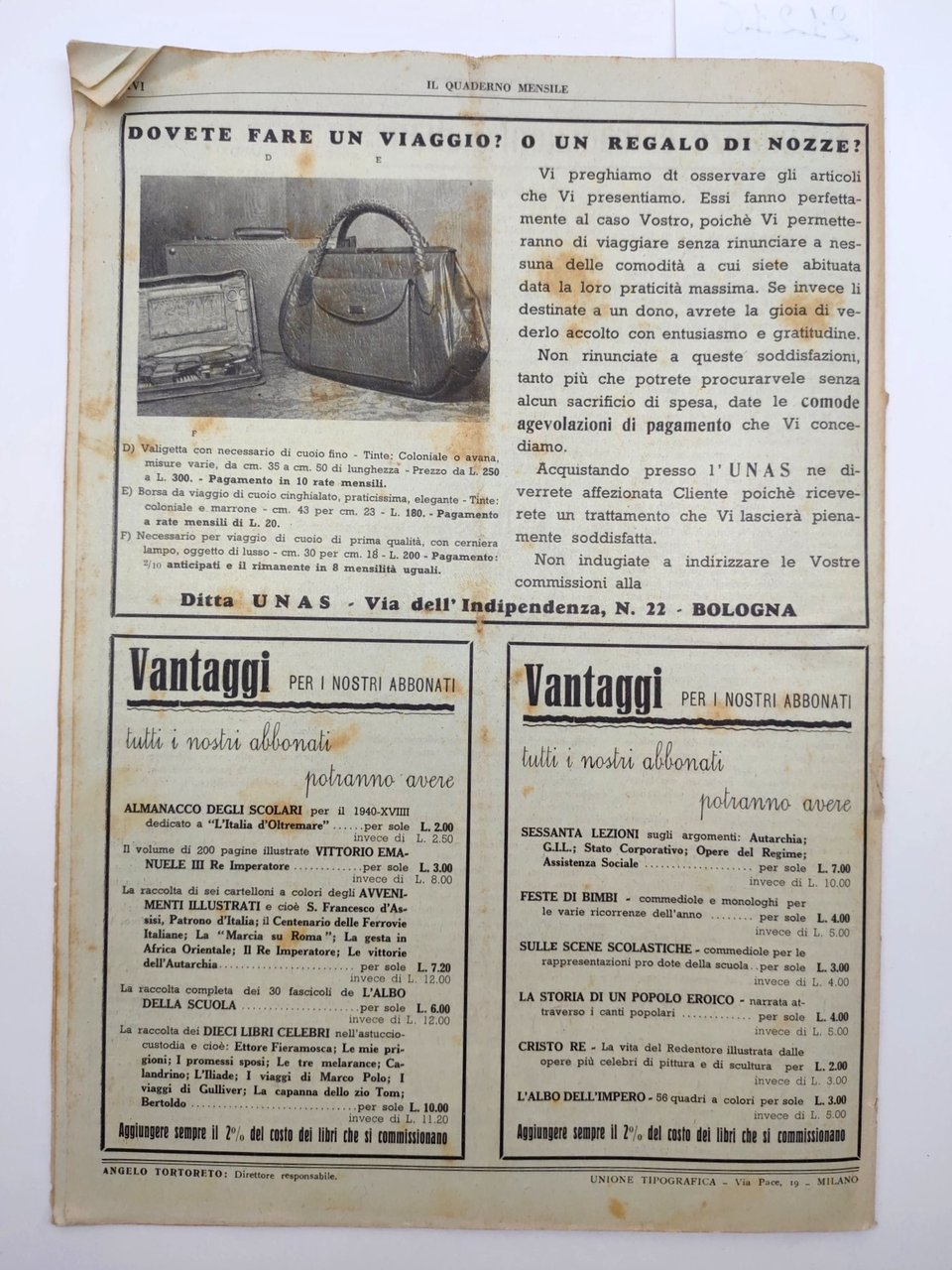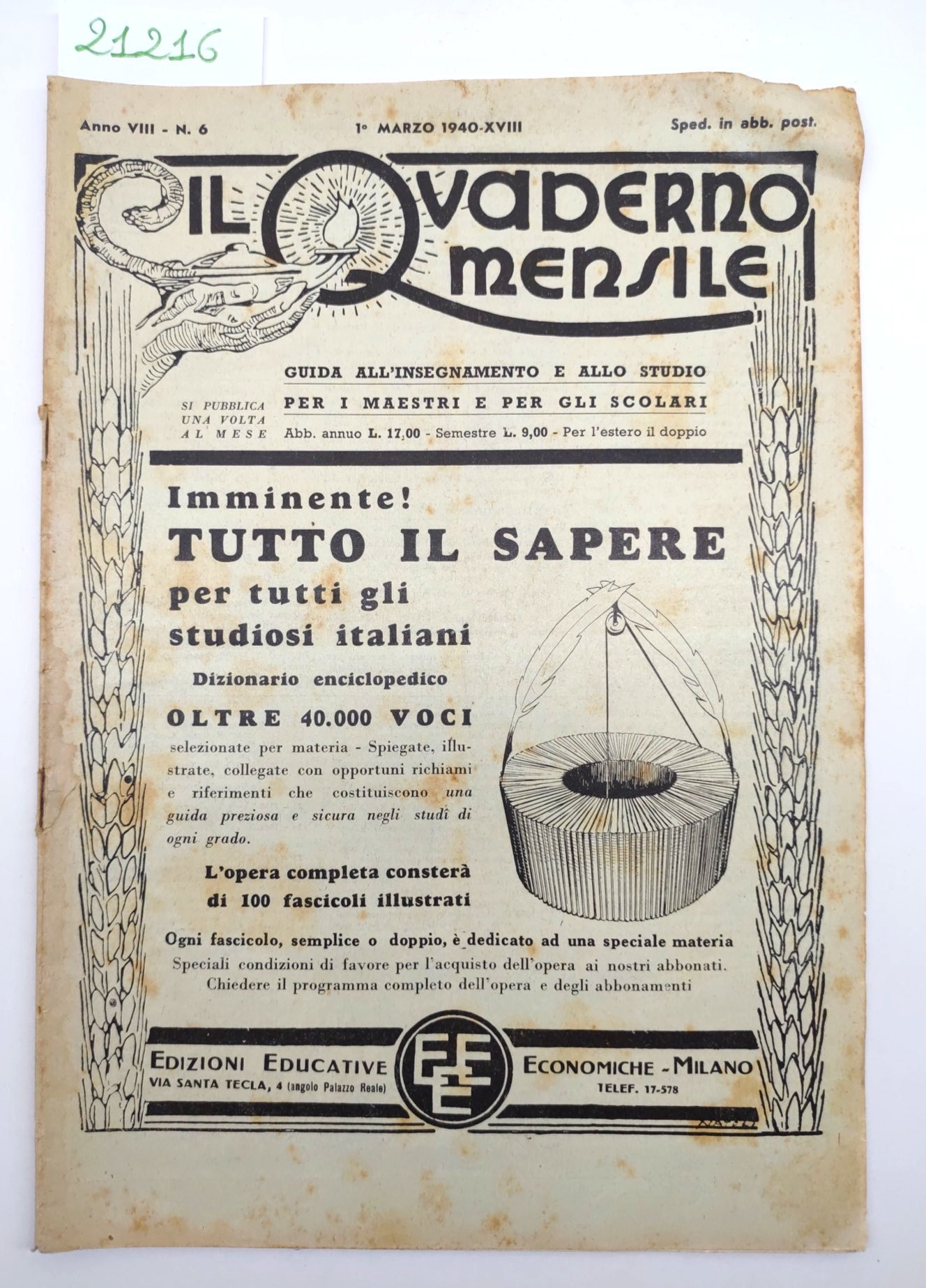 Il quaderno mensile n. 6 1940 guida all'insegnamento e allo studio per i maestri per gli scolari Edizioni Educative Economiche