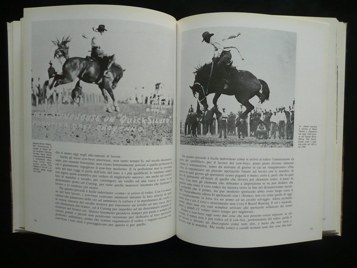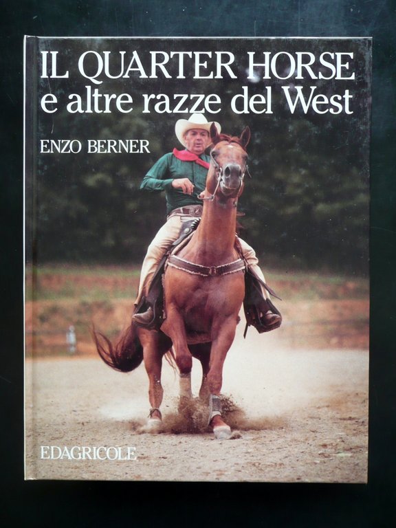Enzo Berner, Il Quarter Horse e altre razze del West Presentazione di Alberto Giubilo Edagricole, Bologna 1987, cm 27x21, pp. I-VIII; pp. 1-135 con numerose ill. in larga parte fot. in b/n e a col. n. t. e f. t. (una su due pagine); tutto cartonato ed. ill. a colori. Condizioni di conservazione Esemplare in ottime condizioni con minime tracce d'uso. Interni ottimi, freschi. Esemplare in ottimo stato, prima ristampa della prima edizione. Attualmente esaurito (non in commercio). SETT85.L7545 N
