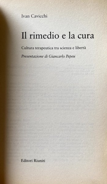 Titolo: Il rimedio e la cura. Cultura terapeutica tra scienza e libertà