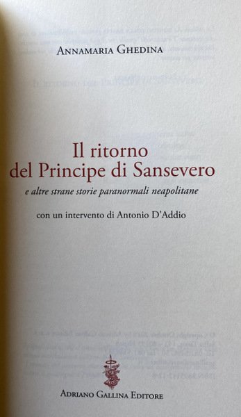 IL RITORNO DEL PRINCIPE DI SANSEVERO E ALTRE STORIE PARANORMALI NEAPOLITANE. CON UN INTERVENTO DI ANTONIO D'ADDIO | Libros antiguos y modernos | Annamaria Ghedina, Antonio D'Addio