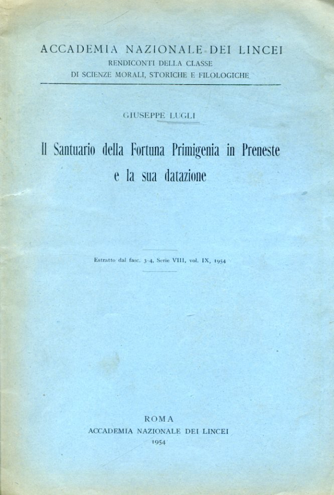 Il Santuario della Fortuna Primigenia in Preneste e la sua datazione | Libros antiguos y modernos | Lugli Giuseppe