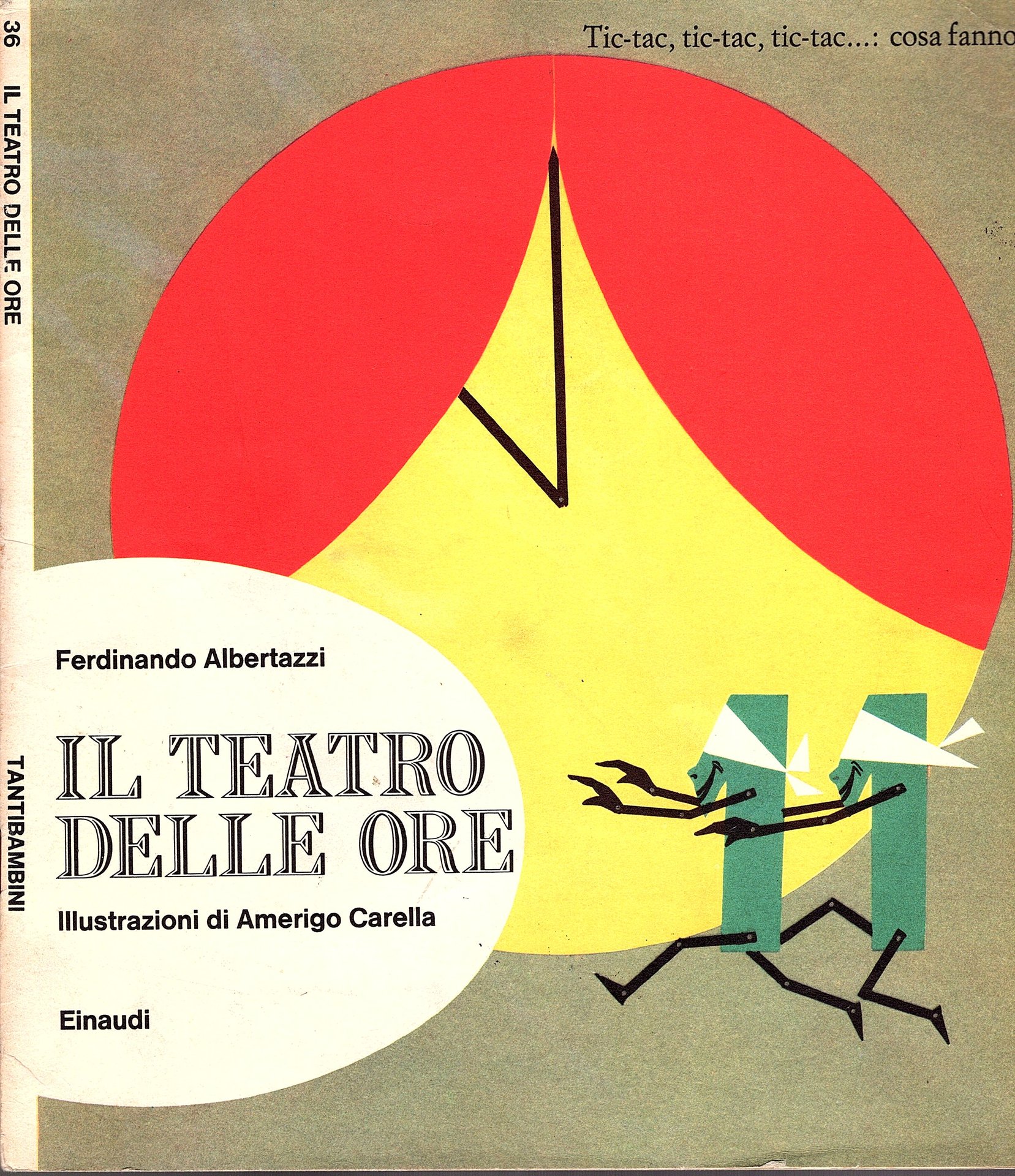 In-8° quasi quadrato (24x23 cm), brossura editoriale spillata con titoli al piatto anteriore figurato, paratesti al posteriore. Pp (16), interamente figurato con disegni a colori. Tantibambini collana diretta da Bruno Munari, 36. Più che buon esemplare. Edizione originale di questa favola oraria figurata.