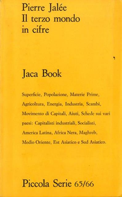 202 p. ; 20 x 13 cm. Piccola serie, 65/66. Titolo originale dell'opera: «Le tiers monde en chiffres». Traduzione della Cooperativa traduttori LNT di Reggio Emilia. Brossura editoriale, coperta in cartoncino flessibile colorato, titolo impresso al piatto e al dorso. Codice libreria 8804.