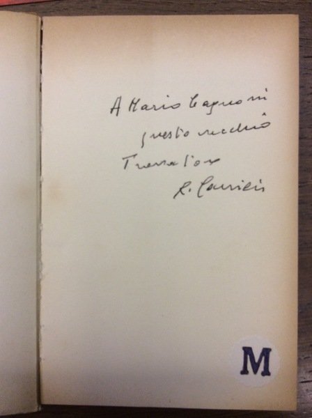 In-16 gr., brossura orig., pp. 113,(3). "Prima edizione" della Collana Lo Specchio - I Poeti del Nostro Tempo. Pagine lievem. ingiallite per la qualità della carta, altrimenti ben conservato, con dedica autografa dell'Autore.