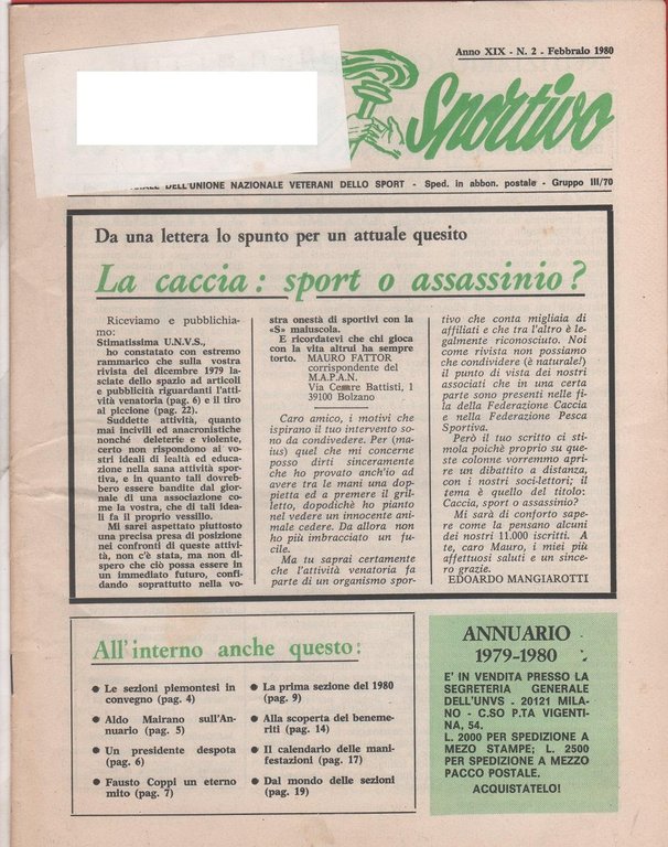 Il veterano sportivo. n. 2 febbraio 1980