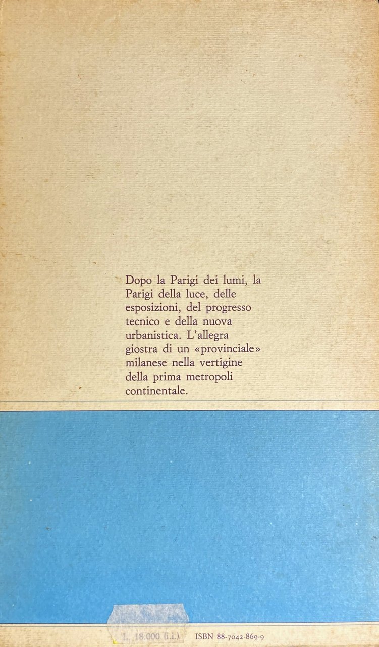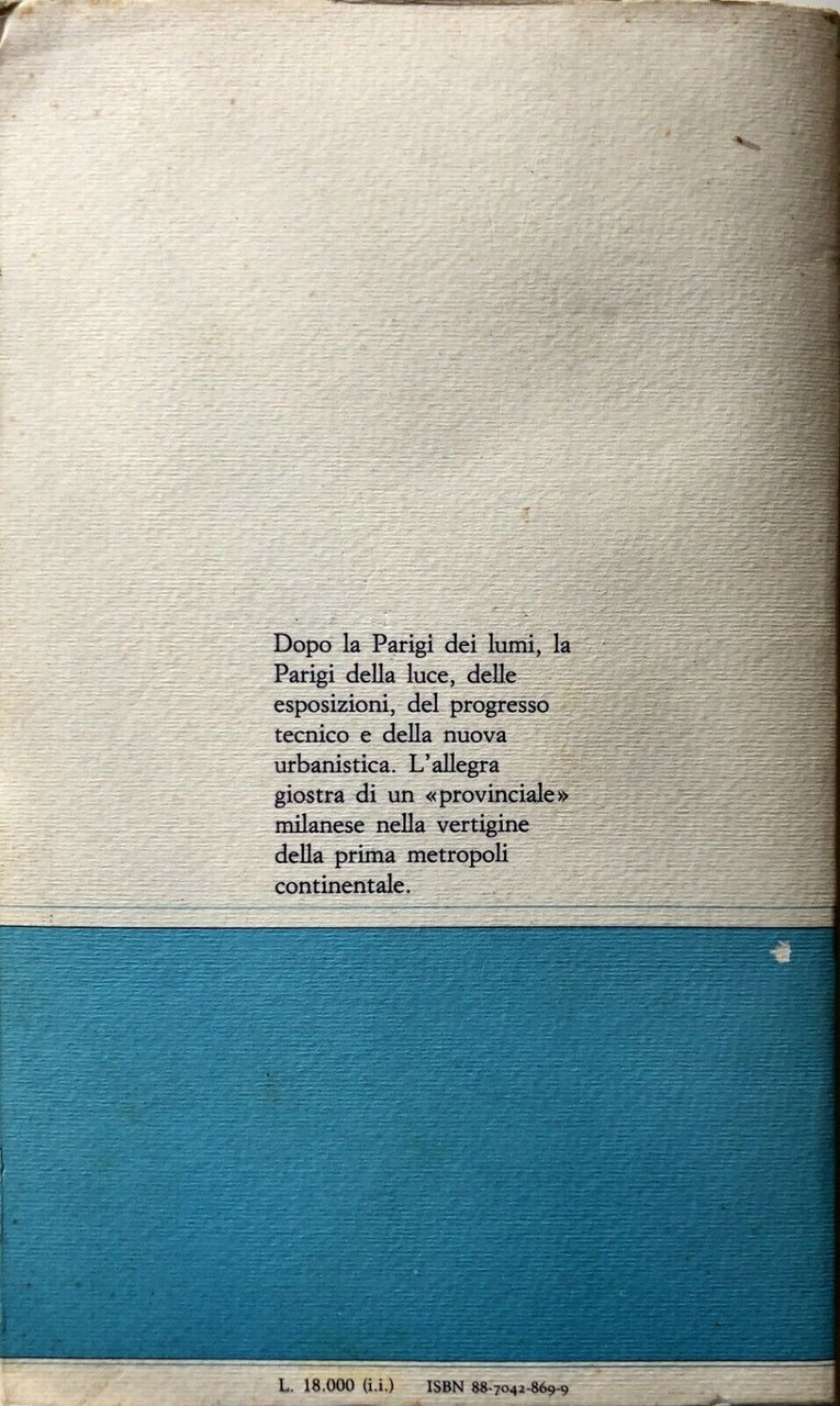 Dopo la Parigi dei lumi, la Parigi della luce, delle esposizioni, del progresso tecnico e della nuova urbanistica. L'allegra giostra di un provinciale milanese nella vertigine della prima metropoli continentale.