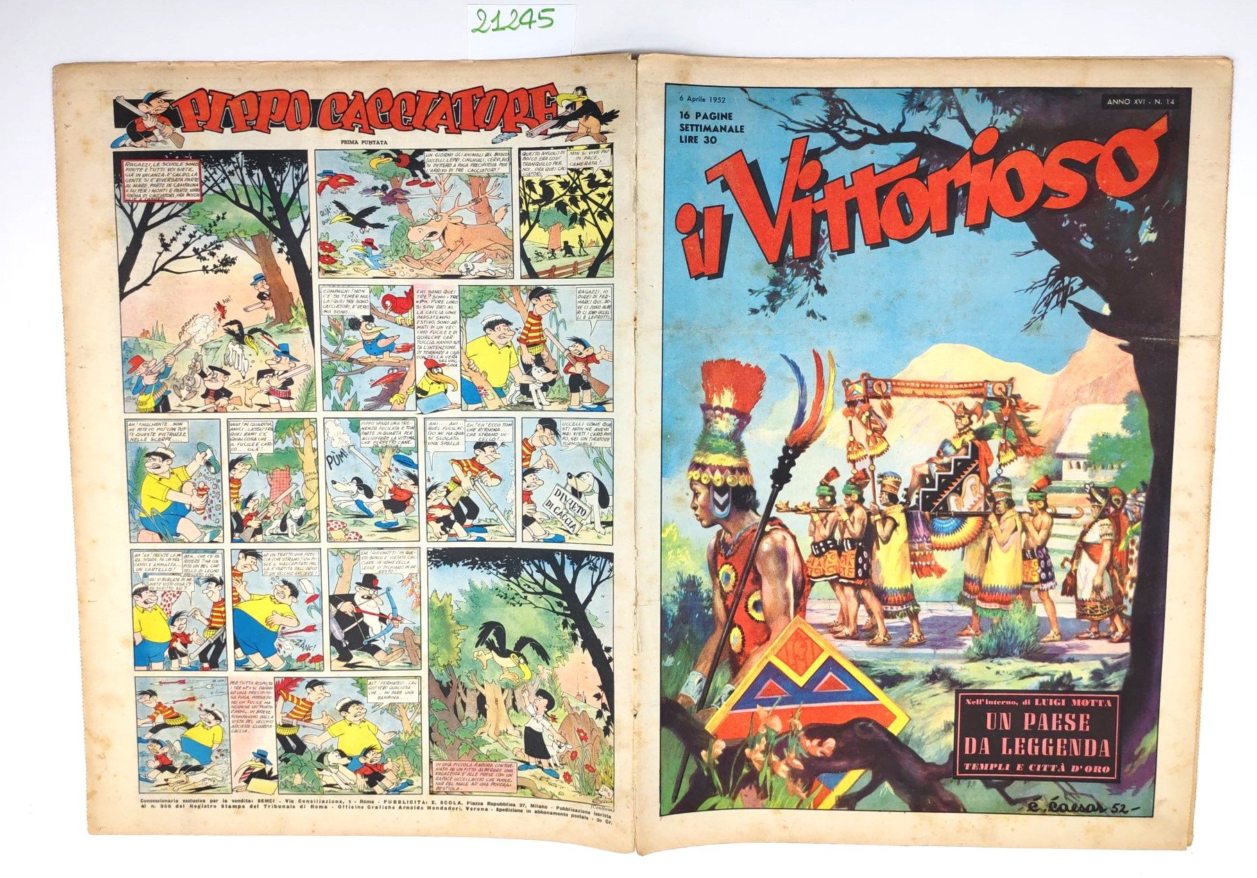 in condizioni accettabili, uno strappo di cm 5 al margine inferiore e di cm. 6 su quello superiore alla costola e ai margini dei piatti, una piega trasversale su tutta la rivista, interno in discrete condizioni, margine esterno leggermente brunito, piccoli strappi e ai margini segni di usura, numero pagine 16 dimensione 36 x 26,5
