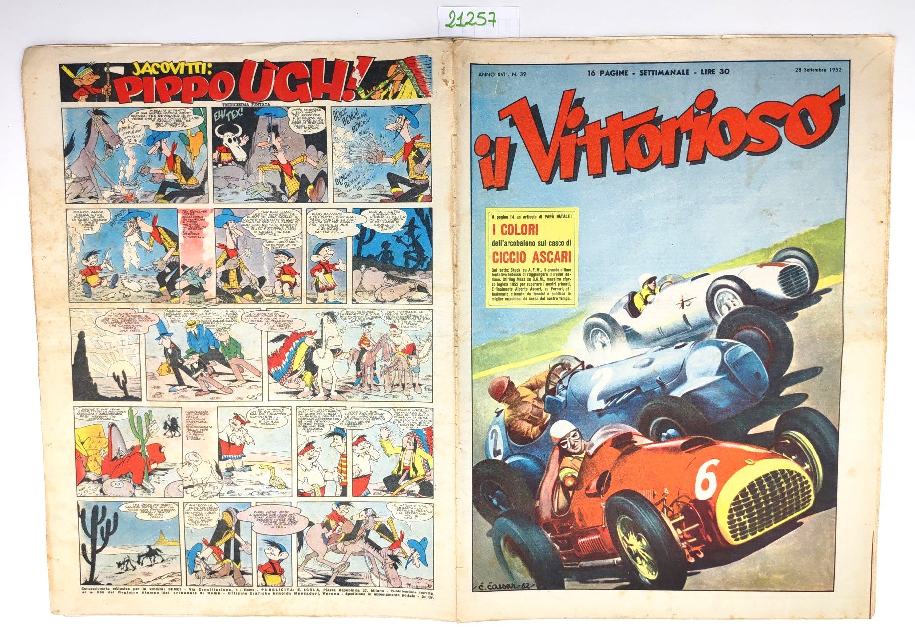in condizioni accettabili, piccoli strappi alla costola e ai margini dei piatti, una piega trasversale su tutta la rivista, interno in discrete condizioni, margine esterno leggermente brunito, piccoli strappi e ai margini segni di usura, numero pagine 16 dimensione 36 x 26,5
