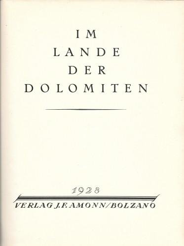 in 4°, pp. 16 nn., 200 pp. di foto in seppia + fascicolo di 16 pp. in bross. custodito al verso del piatto ant.; leg. edit. p/tela beige con tit. al ds. e ill. in verde al piatto. Belle foto di paesaggi, paesi e costumi delle Dolomiti. Fior. alla copertina, interno ottimo. 611/34